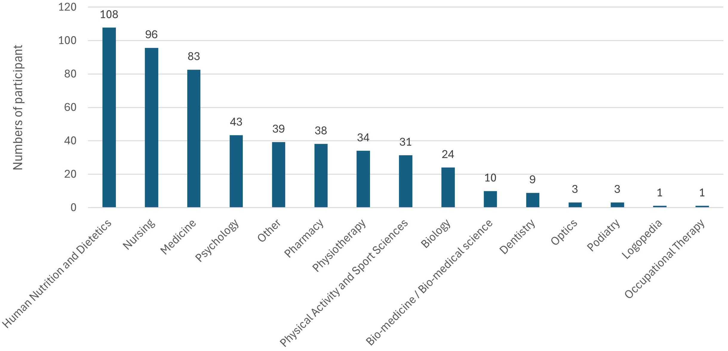It is important to have a minimum of food related education to be able to distinguish between reliable information and misinformation, and thus to be aware of the choices to be made. The stronger their food education, the better able consumers will be to identify misleading or confusing tactics in advertising or on product labels. Food education empowers individuals to make conscious and critical decisions about their diet, which will positively affect their physical and mental health and well-being. Therefore, one would think that professional groups such as doctors, nutritionists, educators, or students are more aware than anyone else of the importance of having correct eating habits and putting them into practice in their personal environment [32].