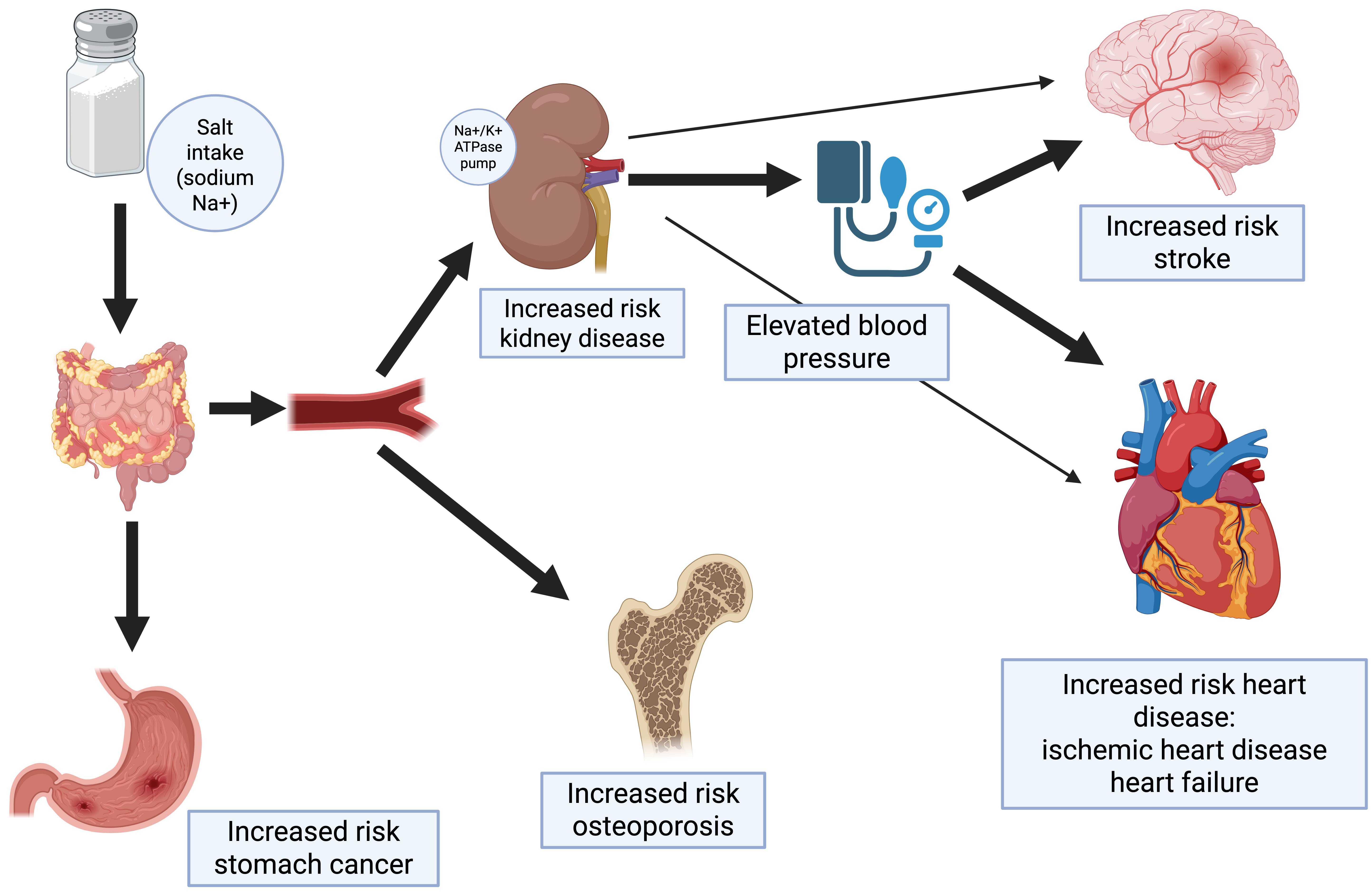 Adverse effects of high sodium (salt) intake.