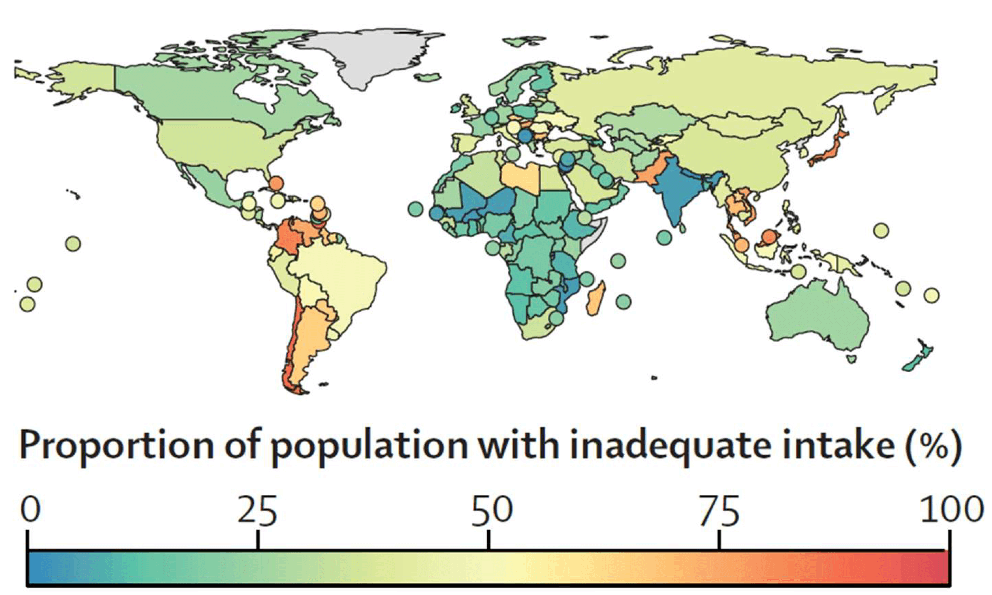 Estimated prevalence of inadequate magnesium intake by country in 2018. Globally, an estimated 2.4 billion people or approximately 31% of the population had insufficient magnesium intake. (Adapted with permission from Passarelli et al. [52] Lancet Global Health. 2024; 12: e1590–e1599).