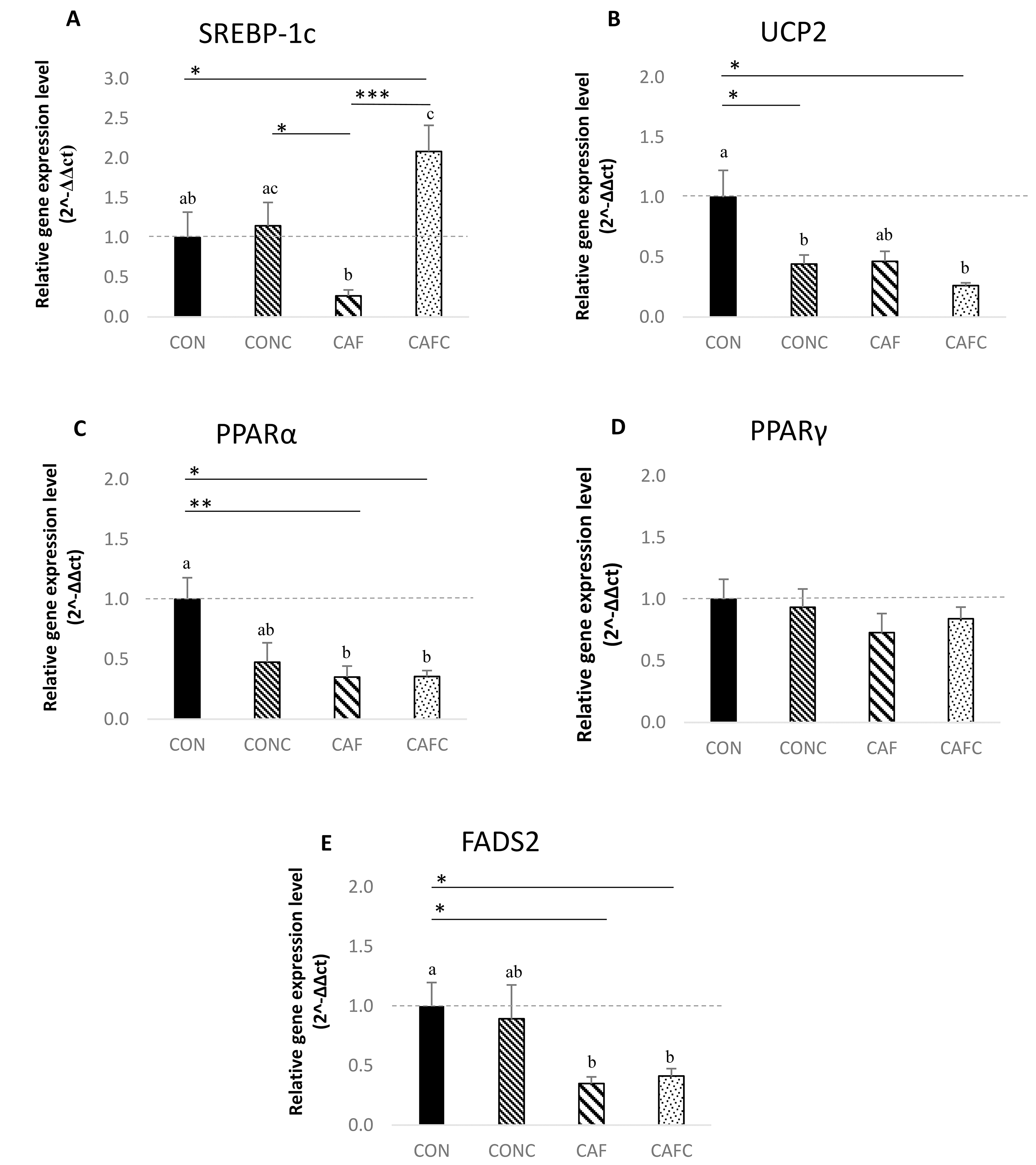 The relative gene expression levels of SREBP-1c, UCP2,