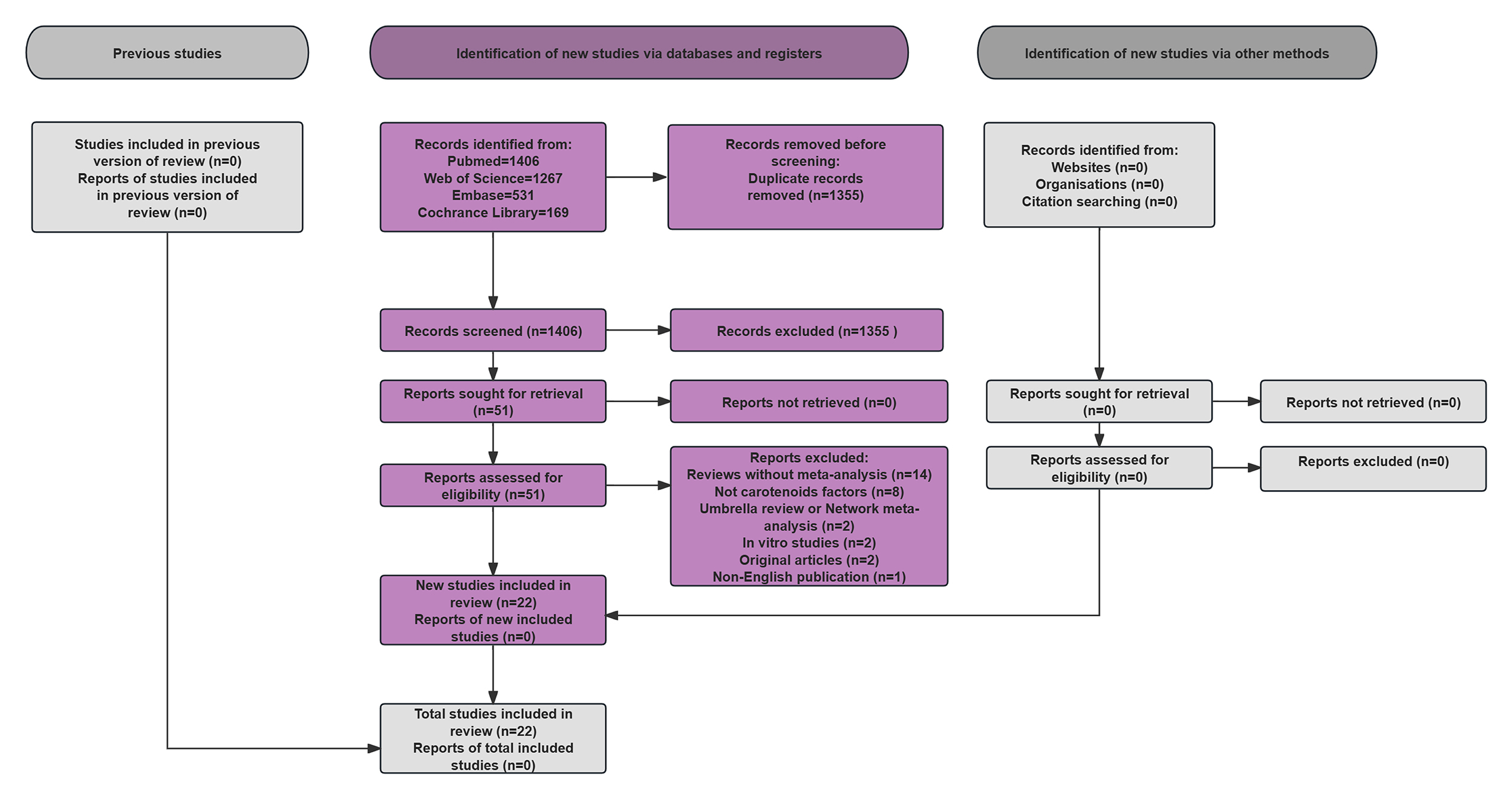 The PRISMA-compliant systematic screening workflow, shown in Fig. 1, details database searches for carotenoid-CVD meta-analyses.