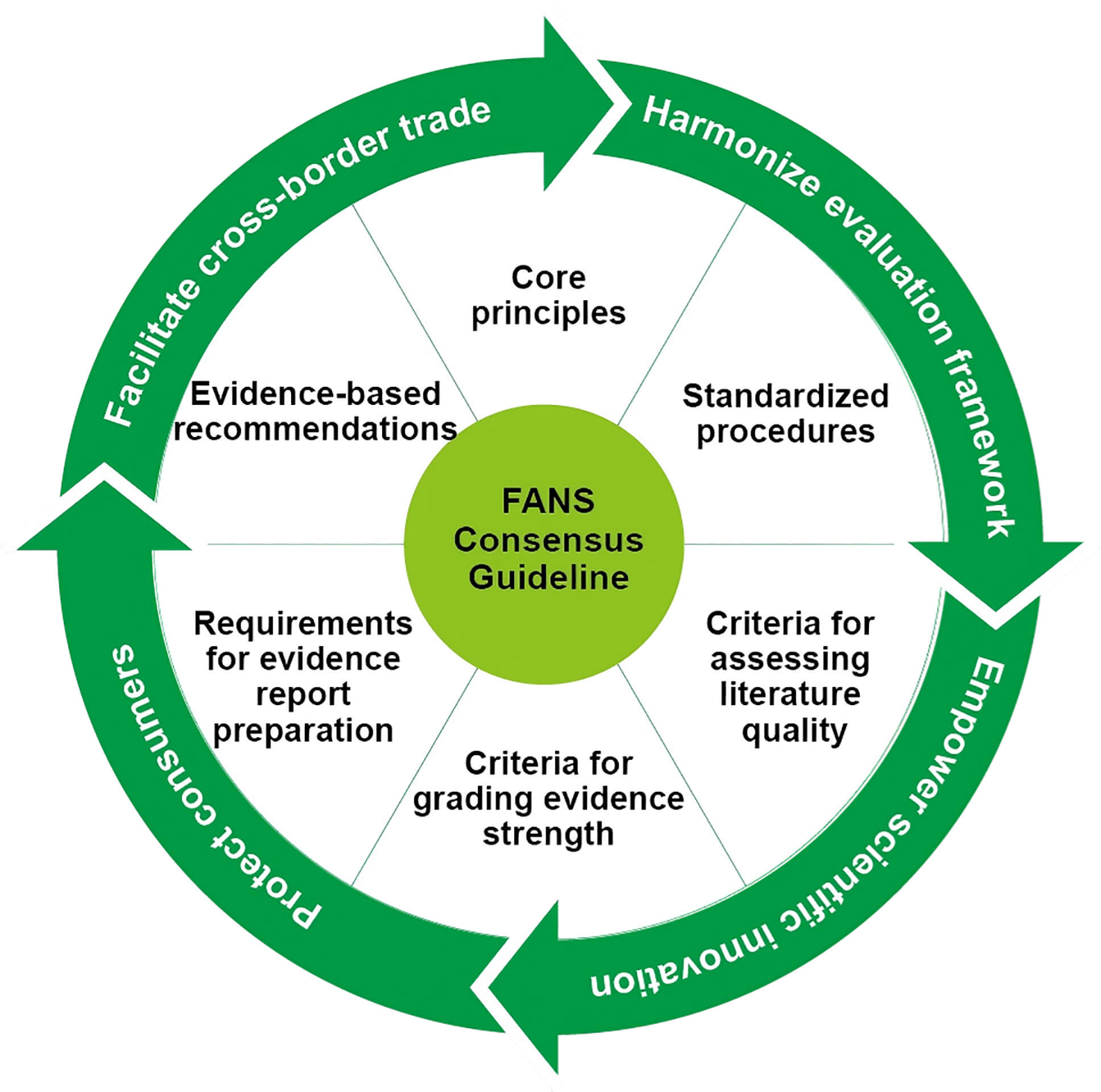 In response to these issues, the Task Force for Nutrition & Health Claim of the Federation of Asian Nutrition Societies (FANS) developed this technical guideline, which was presented and deliberated at the 2025 International Medical Innovation and Cooperation Forum in Fangchenggang, Guangxi, China, to gather stakeholder input and advance the harmonization of regional regulatory practices. As shown in Fig. 1, the guideline has four core objectives: (1) to harmonize regional evaluation frameworks by establishing criteria aligned with global regulatory models [2, 3, 4, 5, 6] while customizing methodological practices for the Asian context; (2) to empower scientific innovation by establishing a transparent, rigorous pathway for validating health and function claims of foods and food ingredients through standardized scientific evidence evaluation [7, 8]; (3) to protect consumers by enhancing accountability and transparency in health and function claims, ensuring that markedted products deliver measurable, evidence-based health benefits; and (4) to facilitate cross-border trade by promoting consistency in the regulation of health and function claims among Asian countries, providing a shared evaluation reference for cross-border markets, and fostering regional economic integration and innovation.