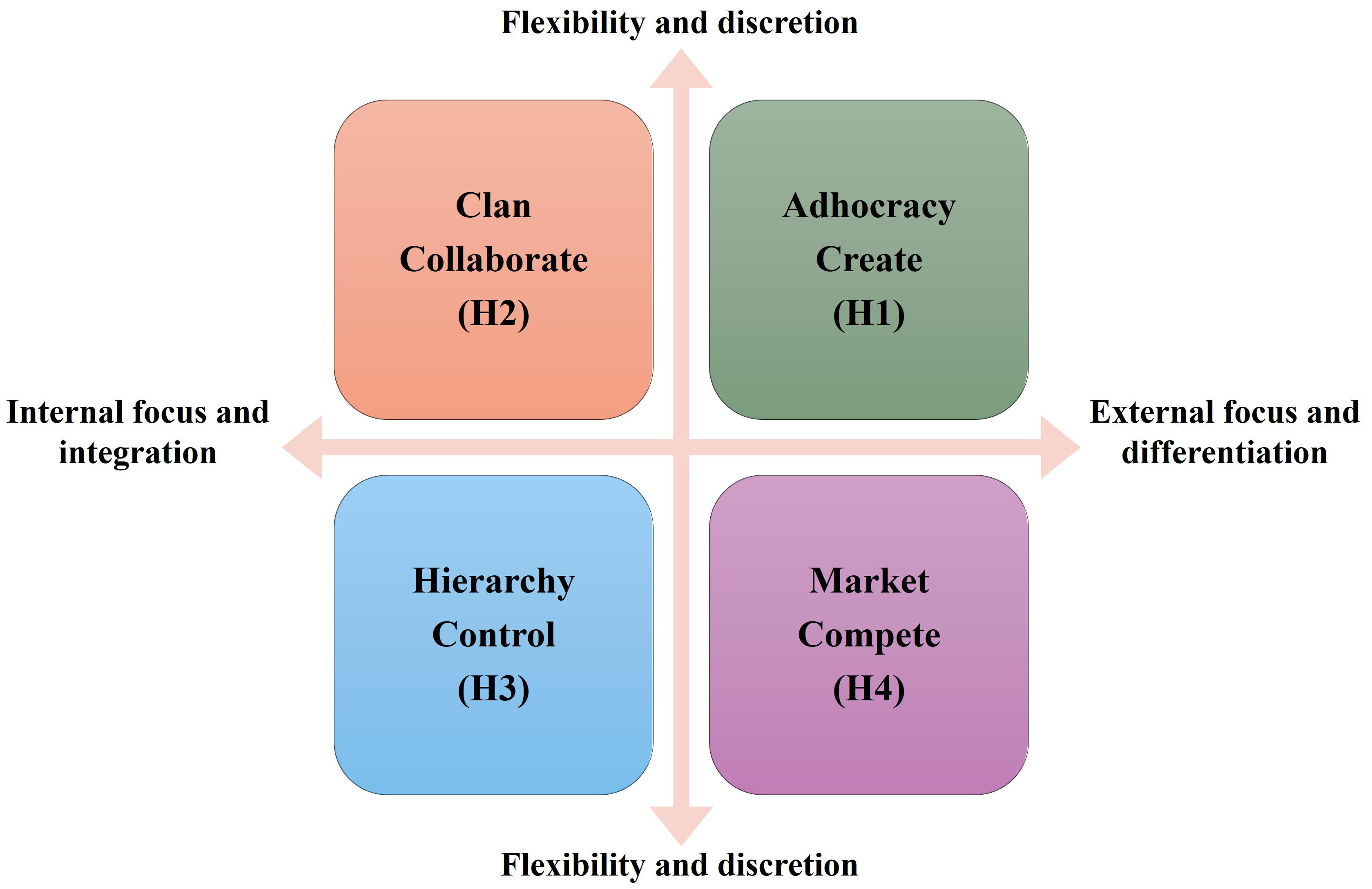 Fig. 1. The CVF’s relationship with the hypotheses. CVF, Competing Values Framework.