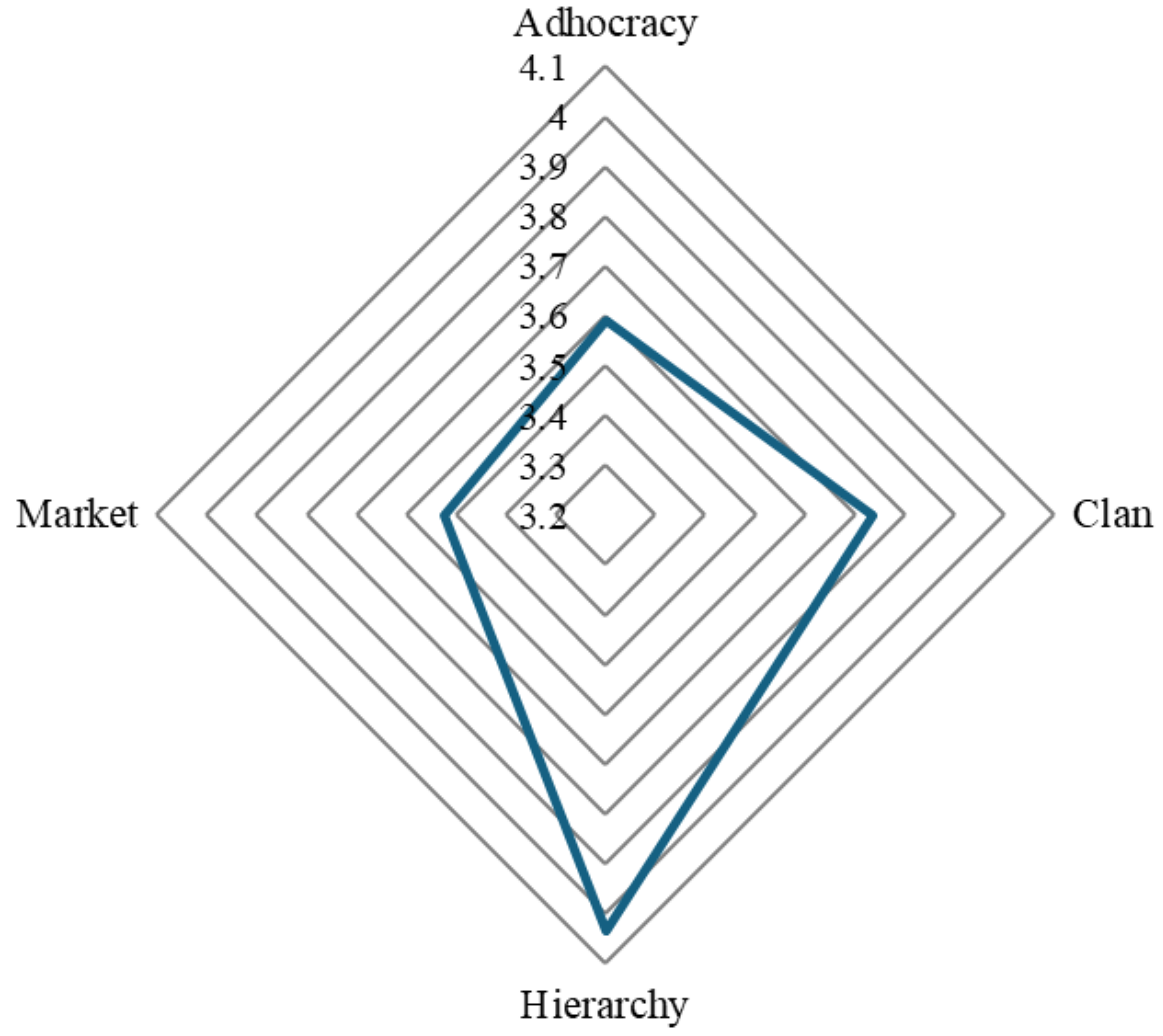 The use of the CVF in this study is justified by its applicability in analyzing and measuring organizational culture at the company level, as well as the possibility of comparison with global trends. More precisely, the CVF categorizes organizational culture into four key quadrants: clan, adhocracy, market, and hierarchy. Each quadrant represents different values and priorities that shape how organizations function and respond to internal and external challenges. By analyzing organizations through this framework, it becomes possible to identify areas of misalignment that may hinder performance, growth, and adaptability in a rapidly changing business environment.