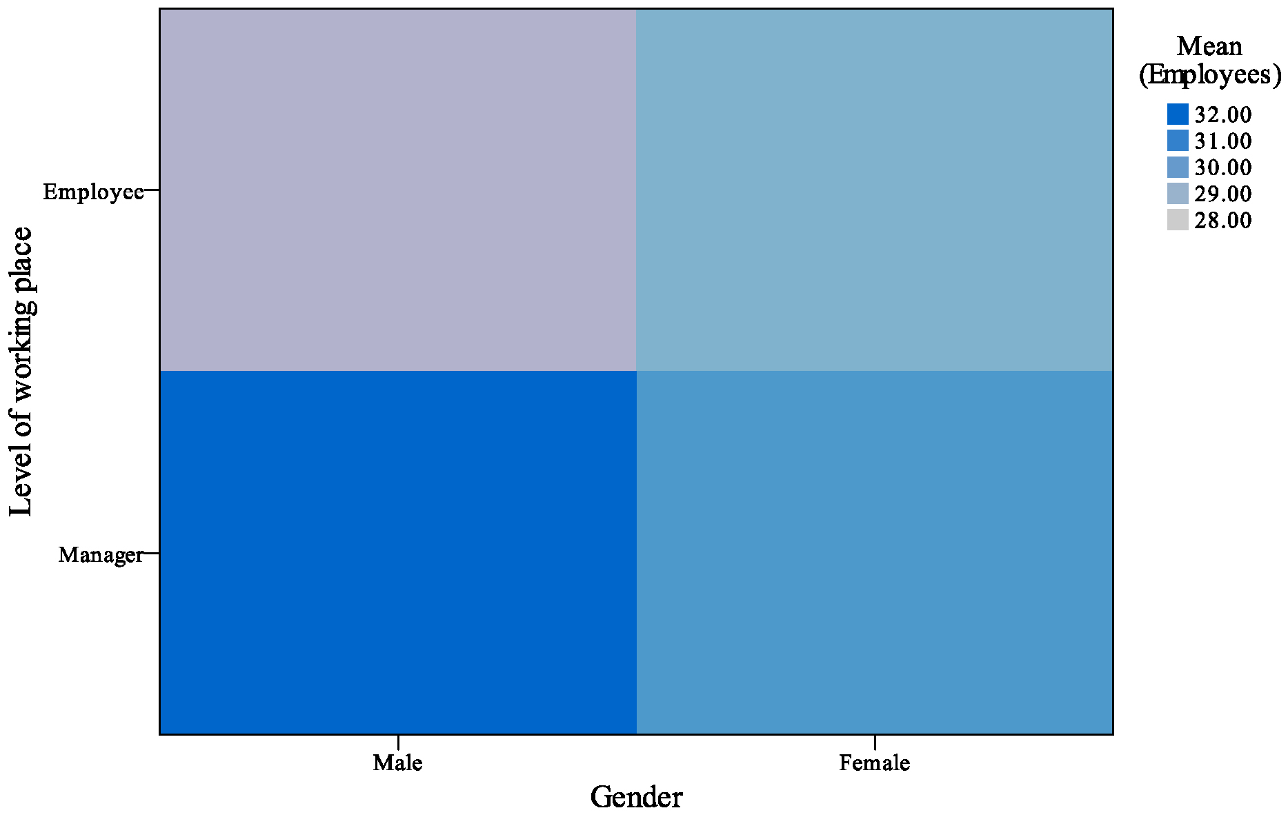 Lastly, the analysis of the demographic data was conducted. The results are presented in tabular and graphical form, i.e., as heat maps for the organizational structure and the gender distribution of the employees in operational and managerial roles.