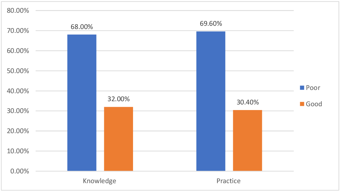Fig. 2. Knowledge and practice of study participants about food safety in Bako Town, Wes Shoa Zone, Oromia, Ethiopia, 2023 (n = 319).