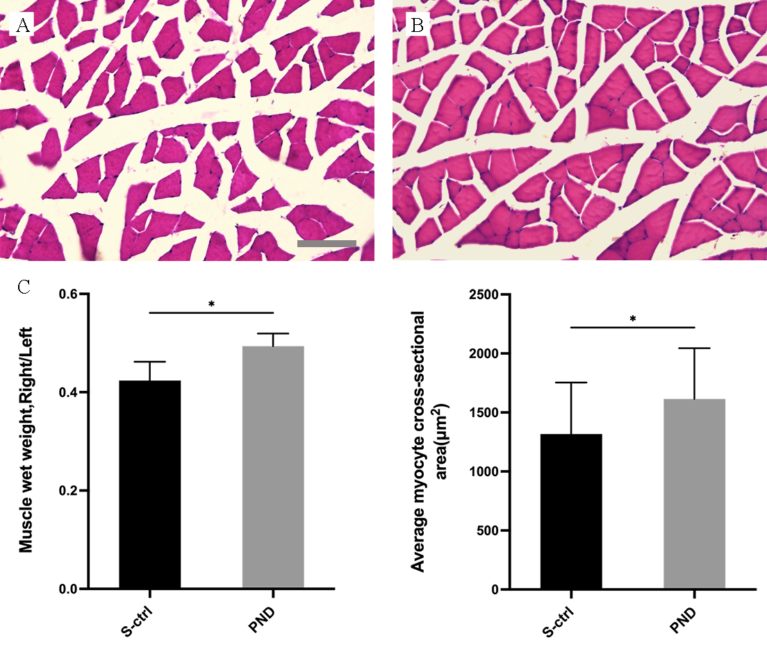 rate (the ratio of muscle wet weight on the injured side to that on the