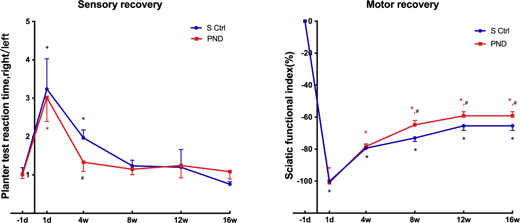 control and PND groups at one and two weeks after injury. Each test was repeated