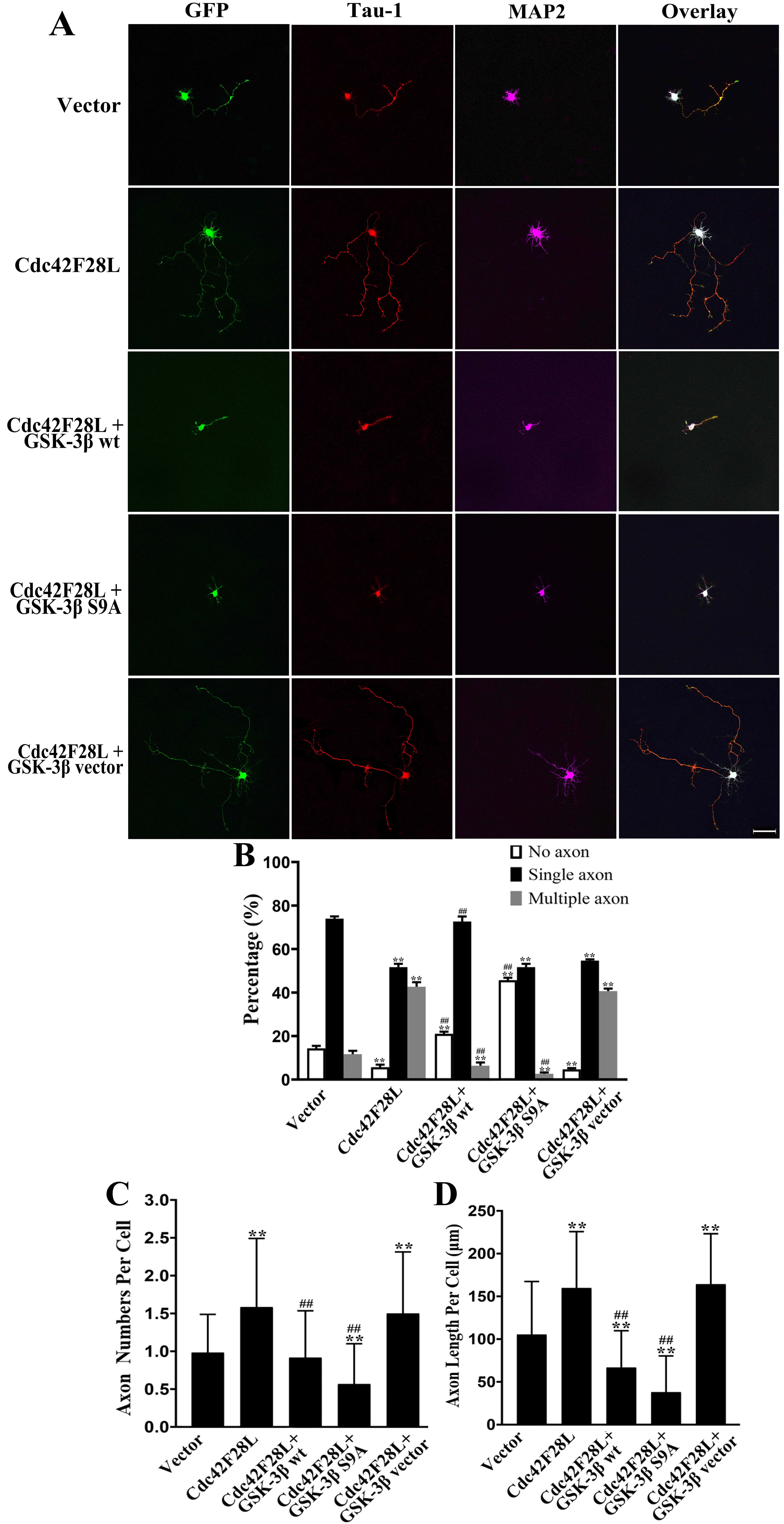 (GSK-3 S9A) partially inhibited Akt-induced formation of multiple axons