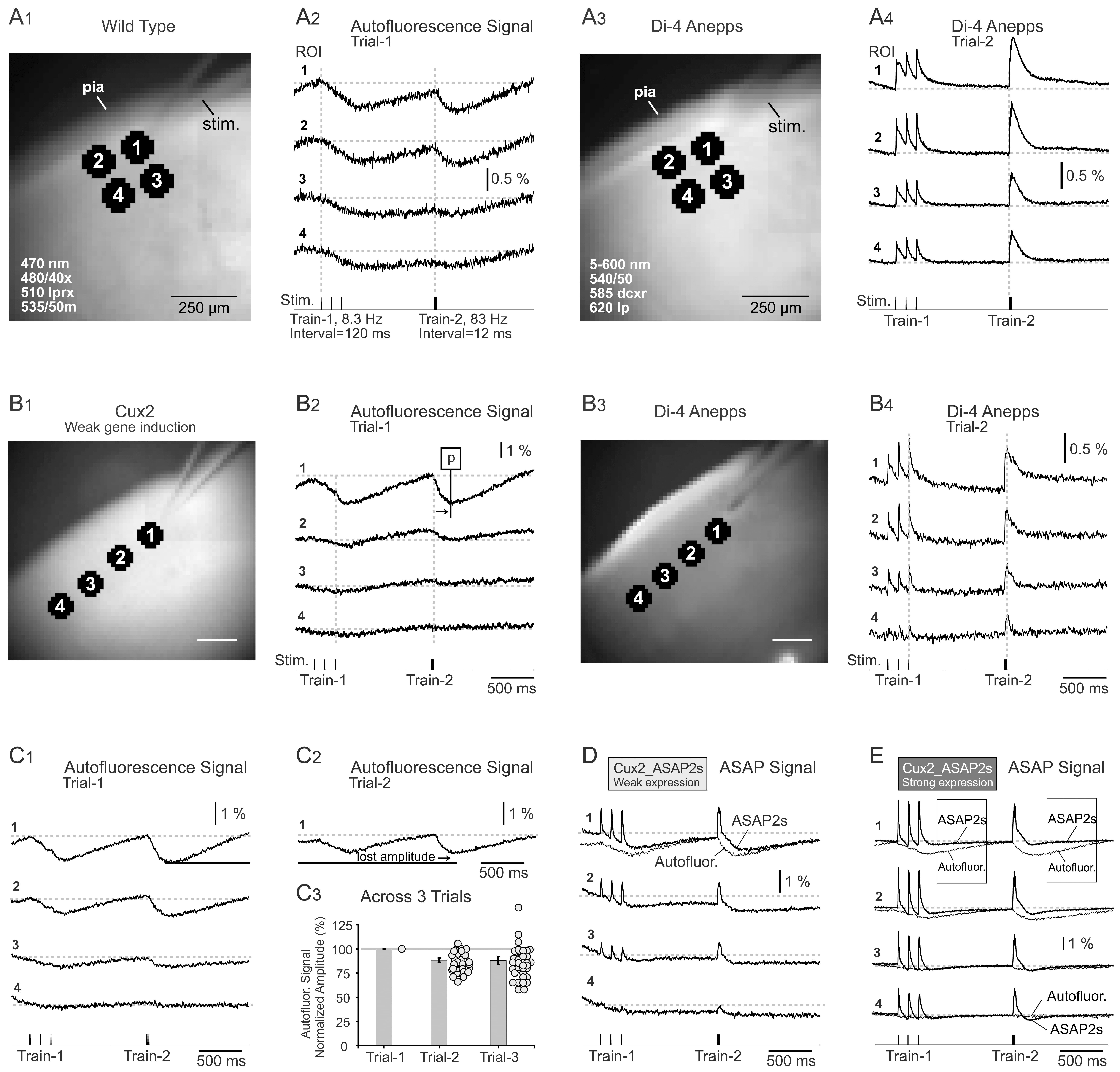 ASAP2s experiments (n = 30 brain slices, 10 animals), optical traces regularly