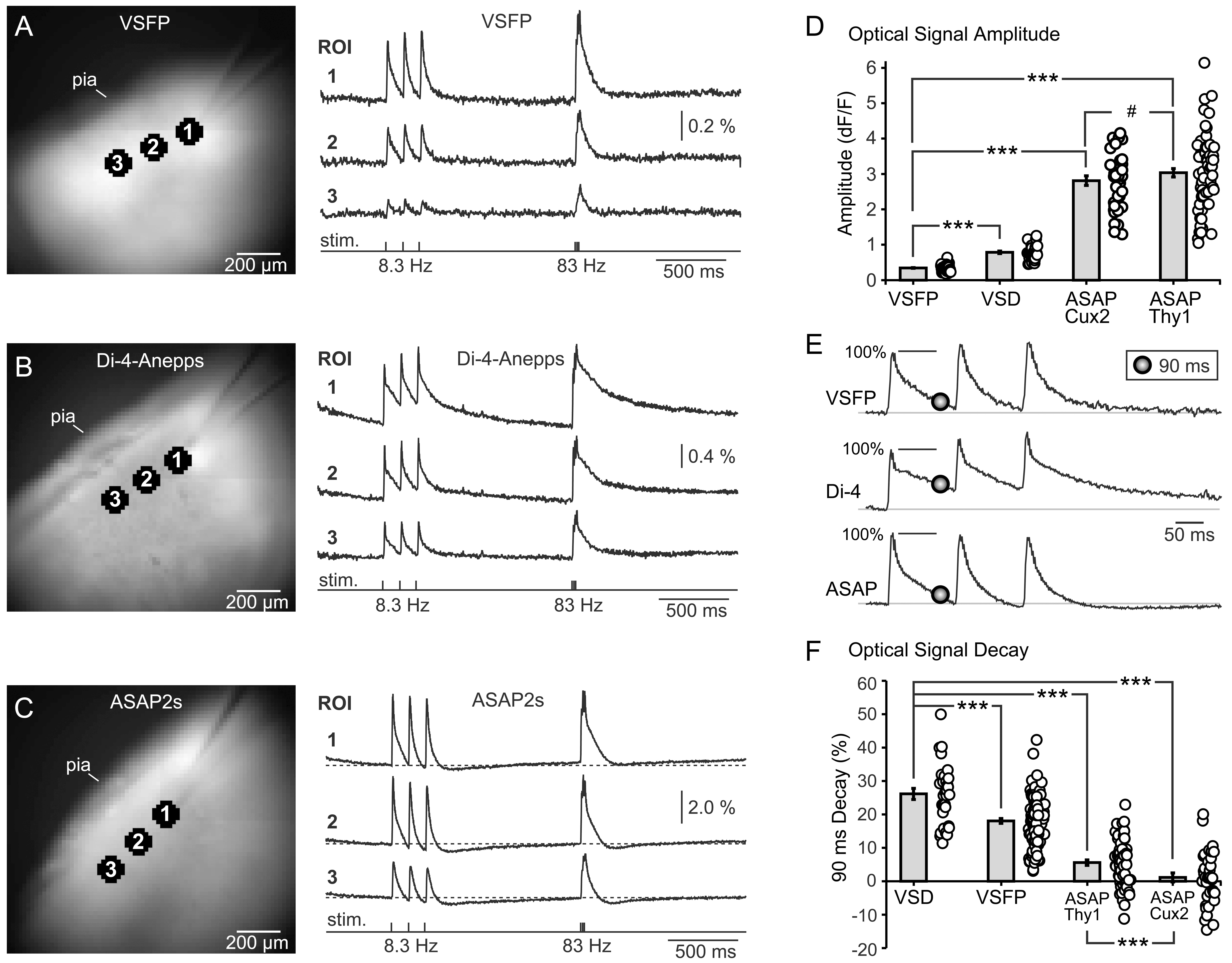 indicator ASAP2s in pyramidal neurons (Thy1). (D) Signal amplitude at the