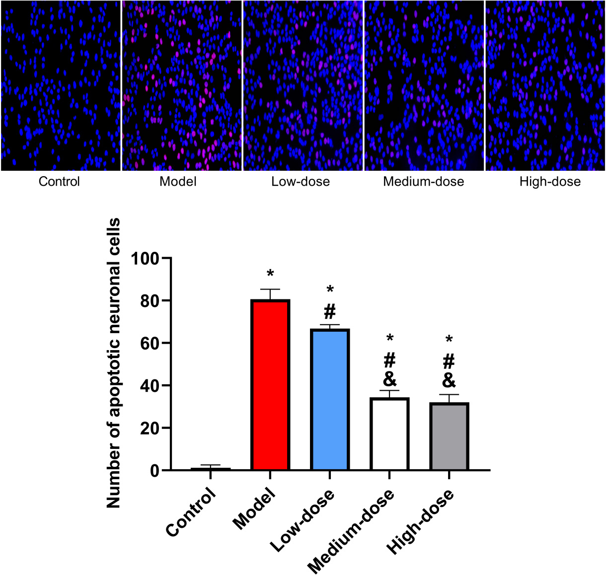 five groups (control, model, low, medium, and high dosage). Methodology: