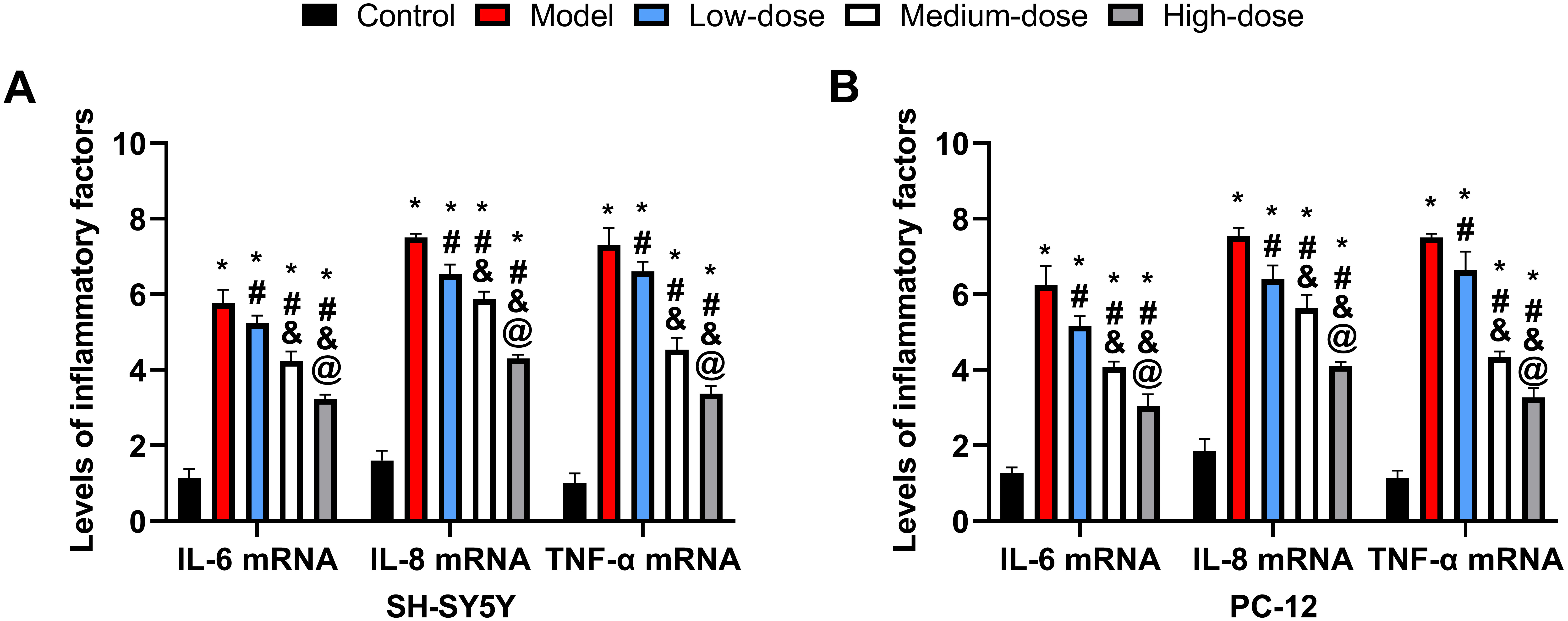factor levels in SH-5Y5Y. (B) Comparison of inflammatory factor levels in PC-12.