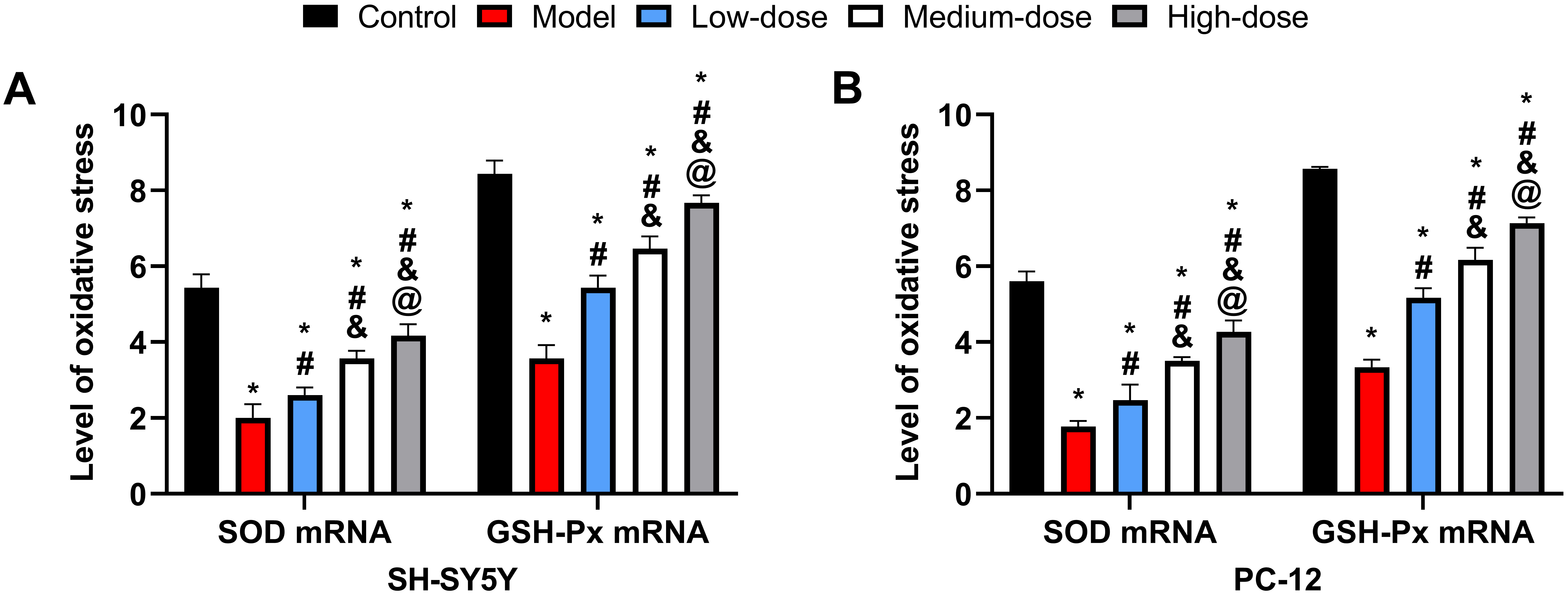 stress levels in SH-5Y5Y. (B) Comparison of oxidative stress levels in PC-12. *: