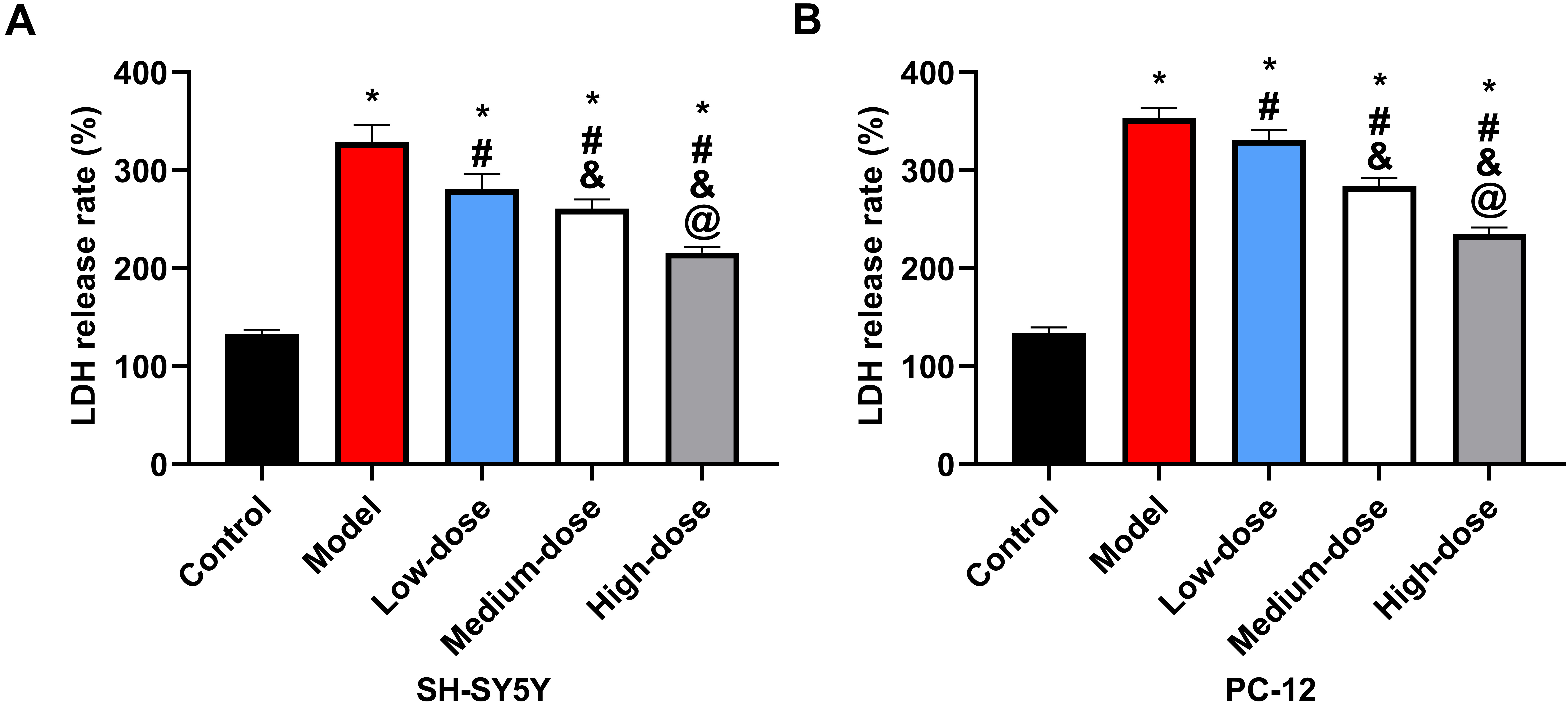 in SH-5Y5Y. (B) Comparison of LDH release rate in PC-12. *: Compared with the