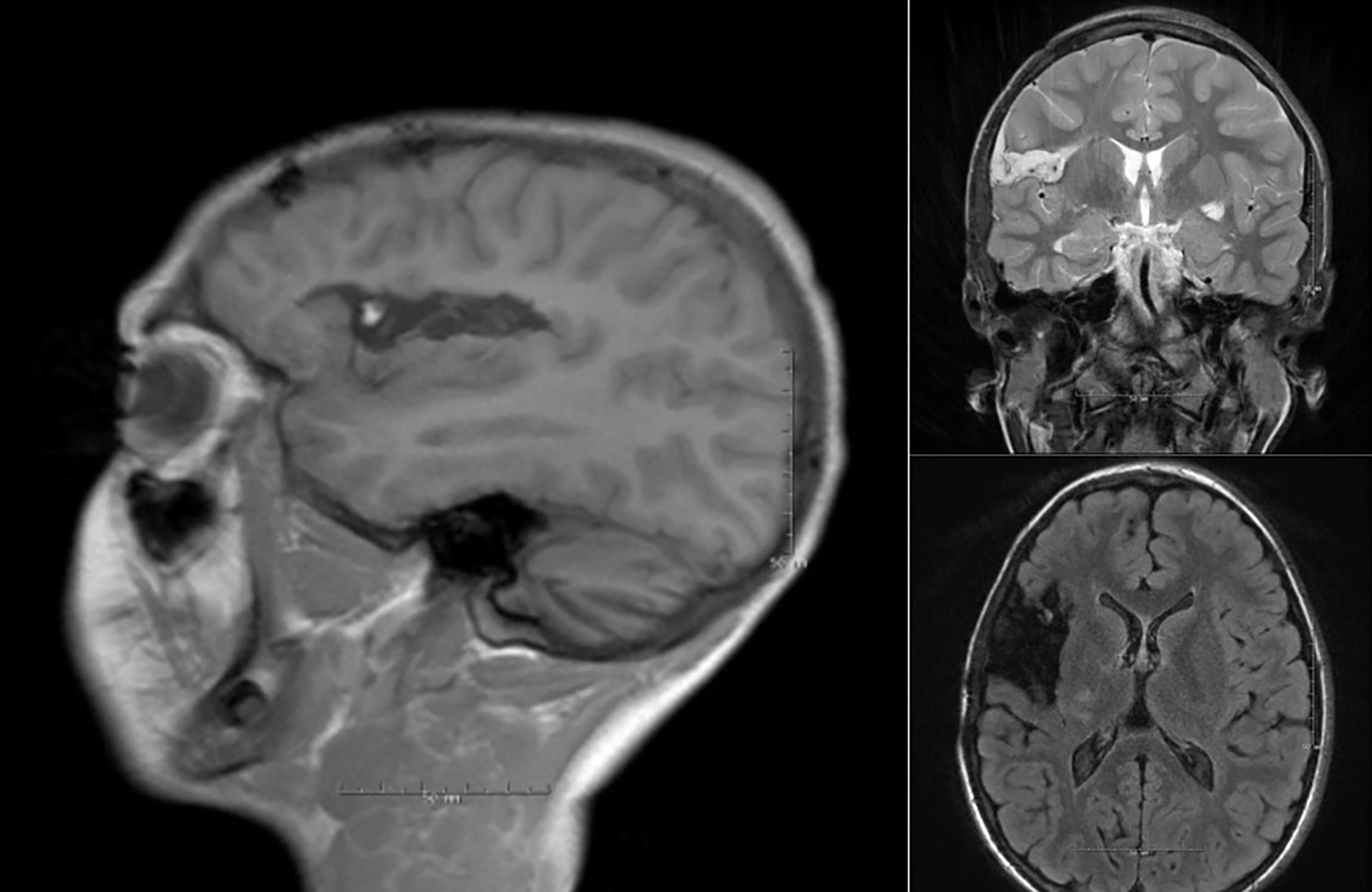 Post operative MRI after dorsal insula resection due to medically refractory epilepsy. The resection resulted in complete arrest of the epileptic activity. MRI, magnetic resonance imaging.