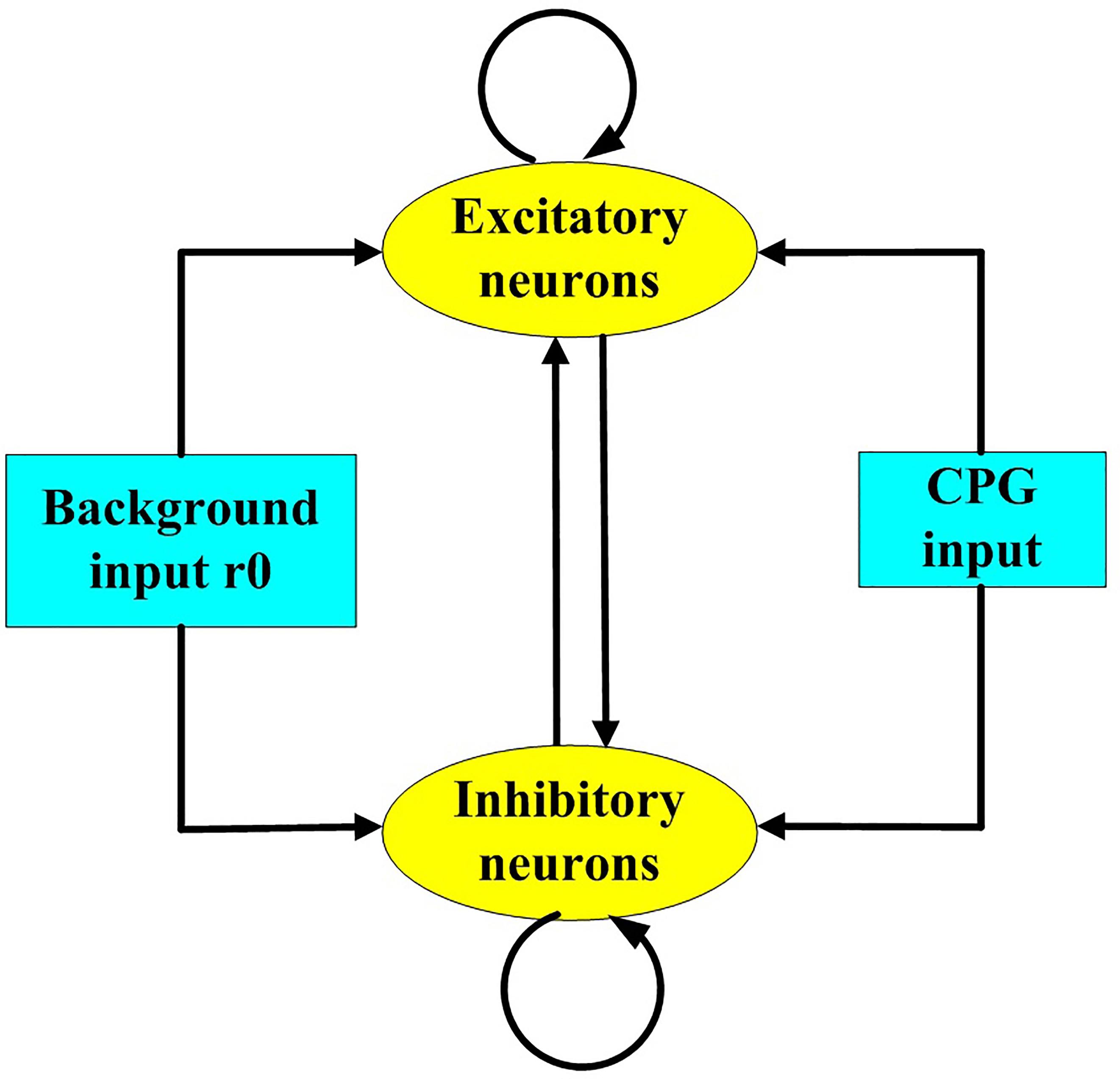 The E-I network in Fig. 3 consists of excitatory and inhibitory neurons, each of which receives background and fractional-order CPG inputs.
