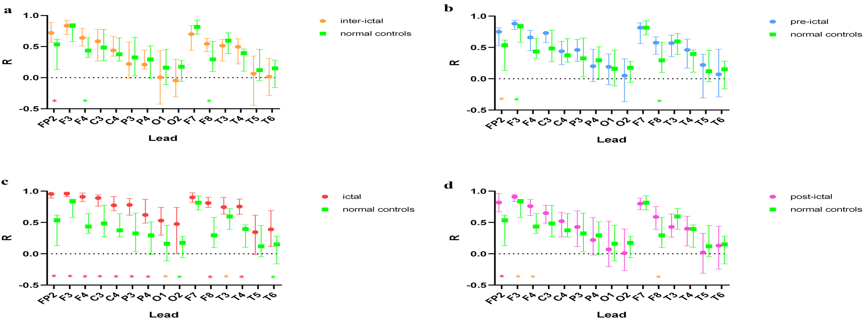 Postictal vs. normal controls. ✳(Red start): p