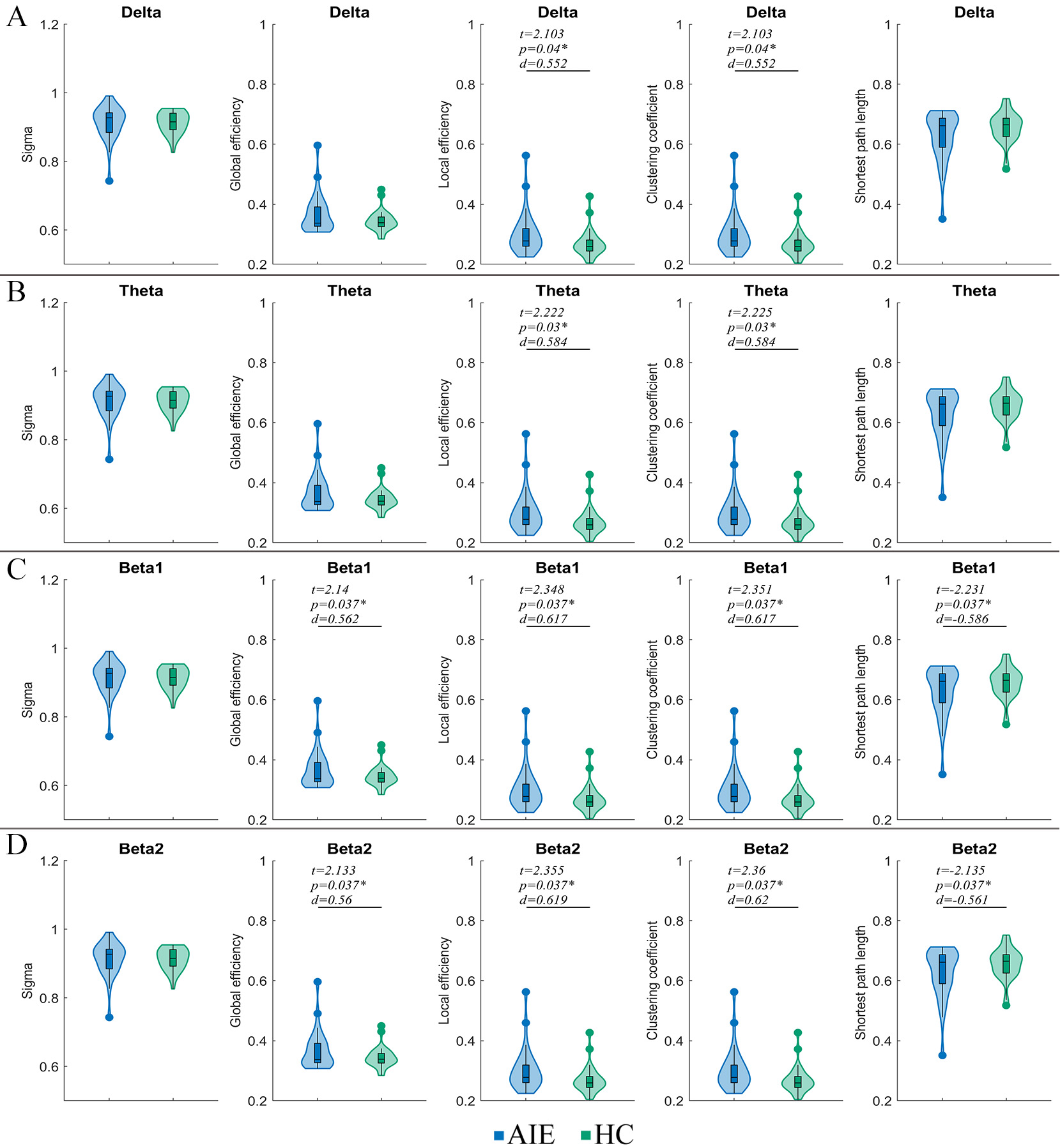 Fig. 2.Comparison of graph theory parameters between AIE and HC