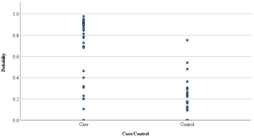 The maximum seizure probability produced by Persyst for each case and control is shown in Fig. 2. Most cases showed a spike of high seizure probability and most controls showed only low probabilities. Outliers were identified in both groups (see Fig. 2).