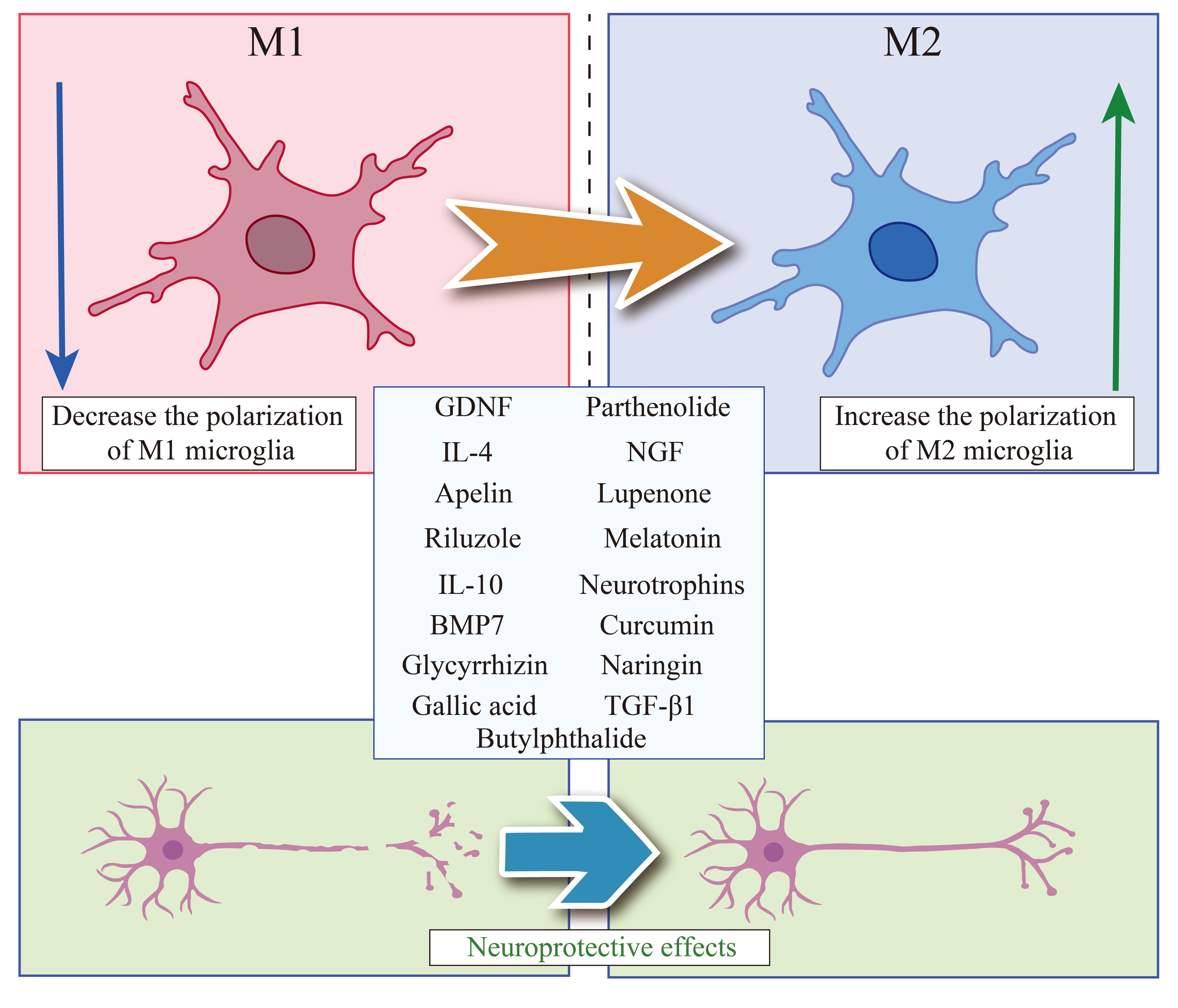 polarization of M1 microglia and promote polarization of M2 microglia, which can