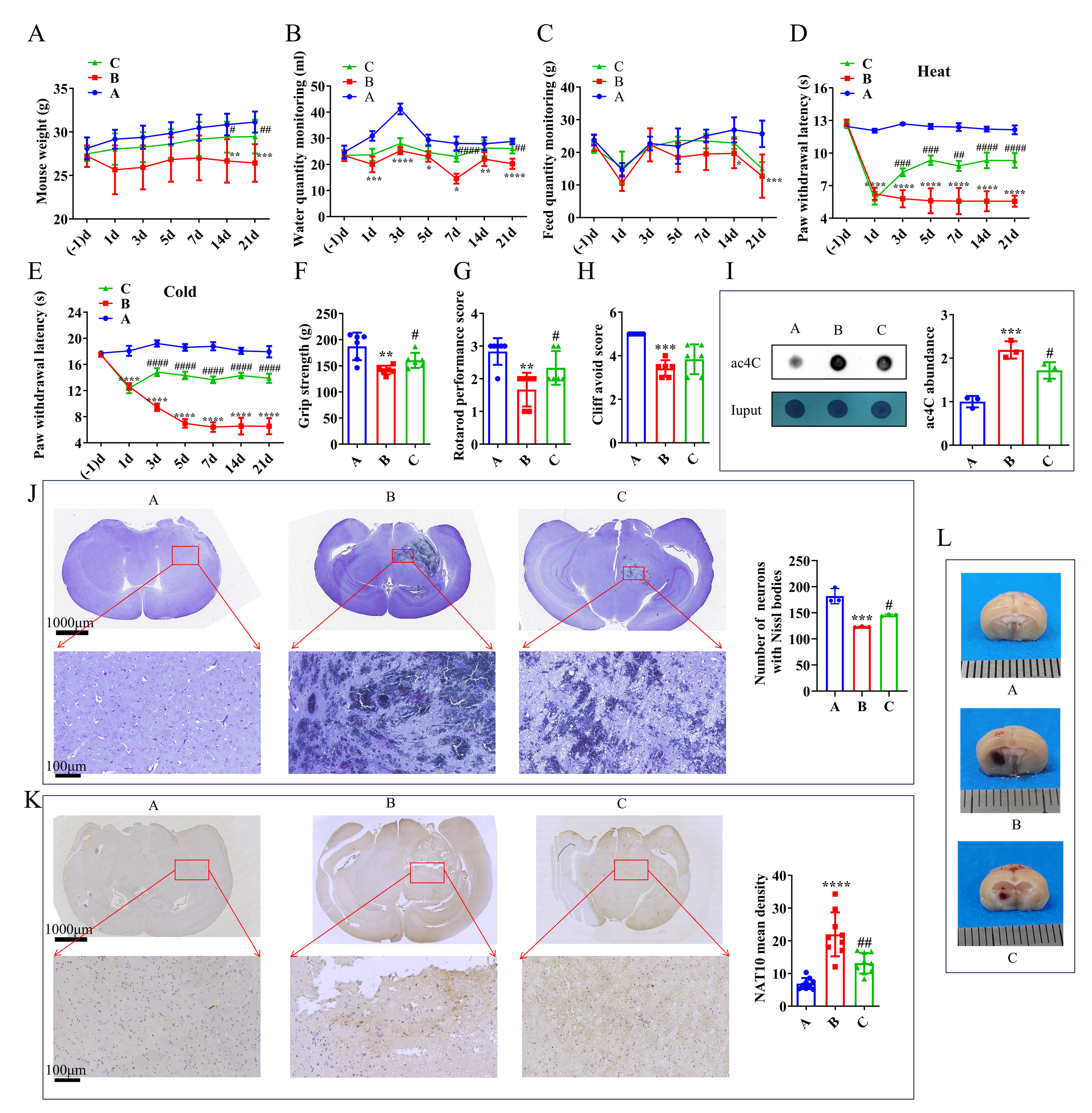 A mouse model of TH was established via collagenase IV injection. NAT10 activity was detected by dot blot and inhibited using Remodelin. Comprehensive multi-omics analyses, including 16S ribosomal Deoxyribonucleic Acid (16S rDNA) sequencing, metabolomics, and transcriptomics, were used. Behavioral, histological, and molecular evaluations were conducted to evaluate the key genes.