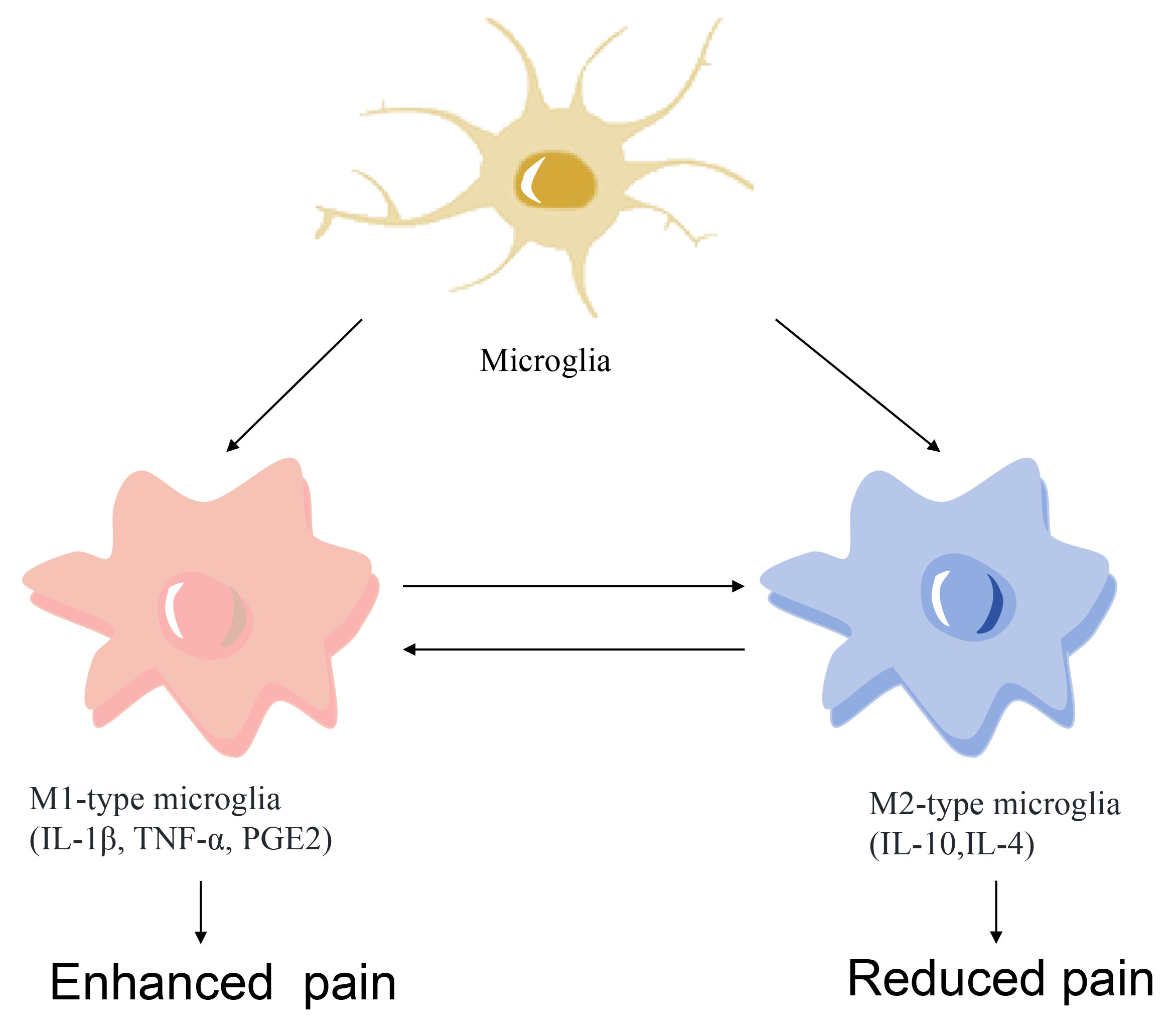 In conclusion, microglia play a complex role in acute pain, participating in the generation, development and even amplification of pain. Therefore, understanding the specific mechanisms of the physiological and pathological roles of microglia in acute pain is important for the development of new pain treatment options.