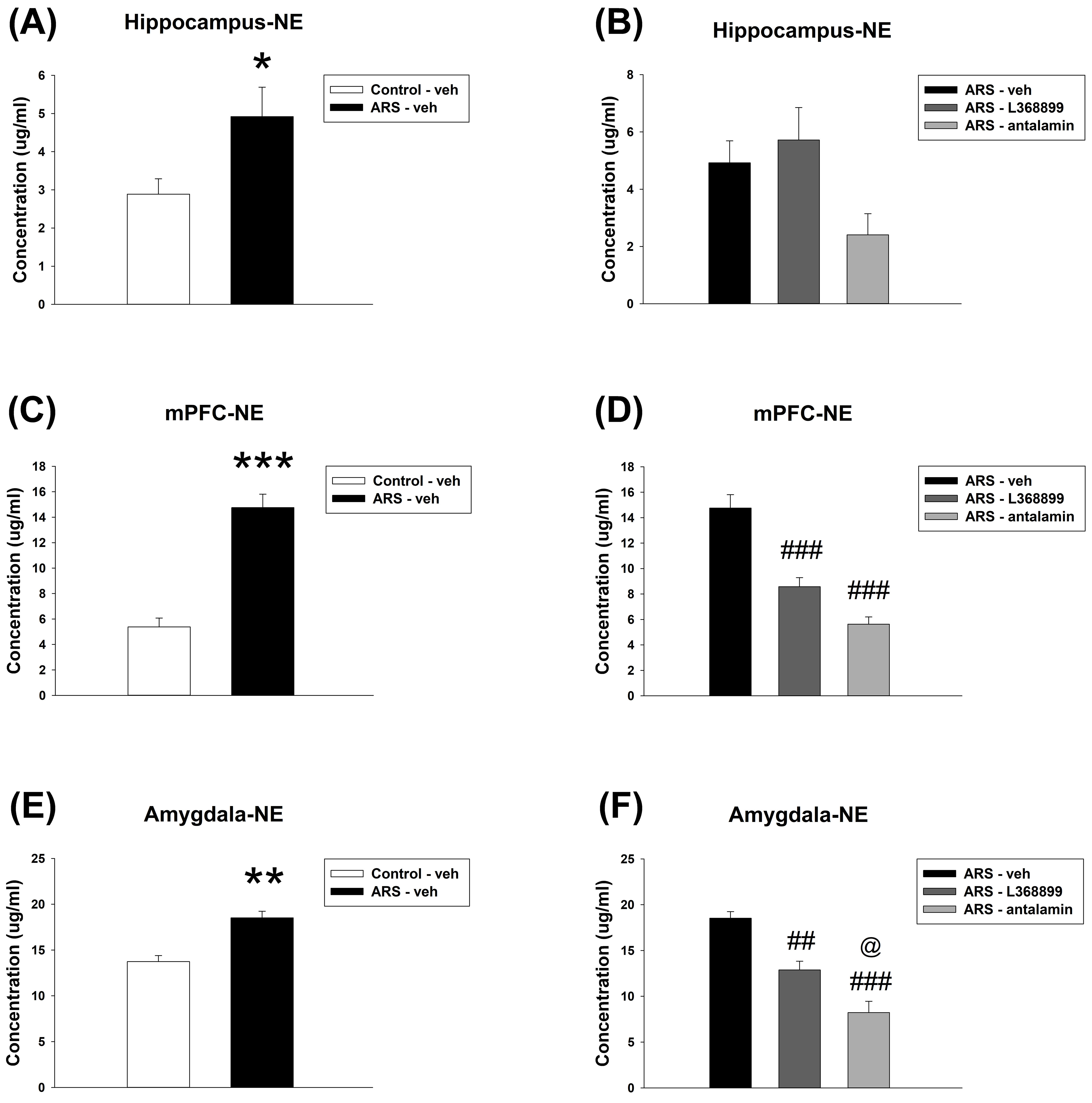 The NE level in the hippocampus, mPFC, as well as amygdala. ARS