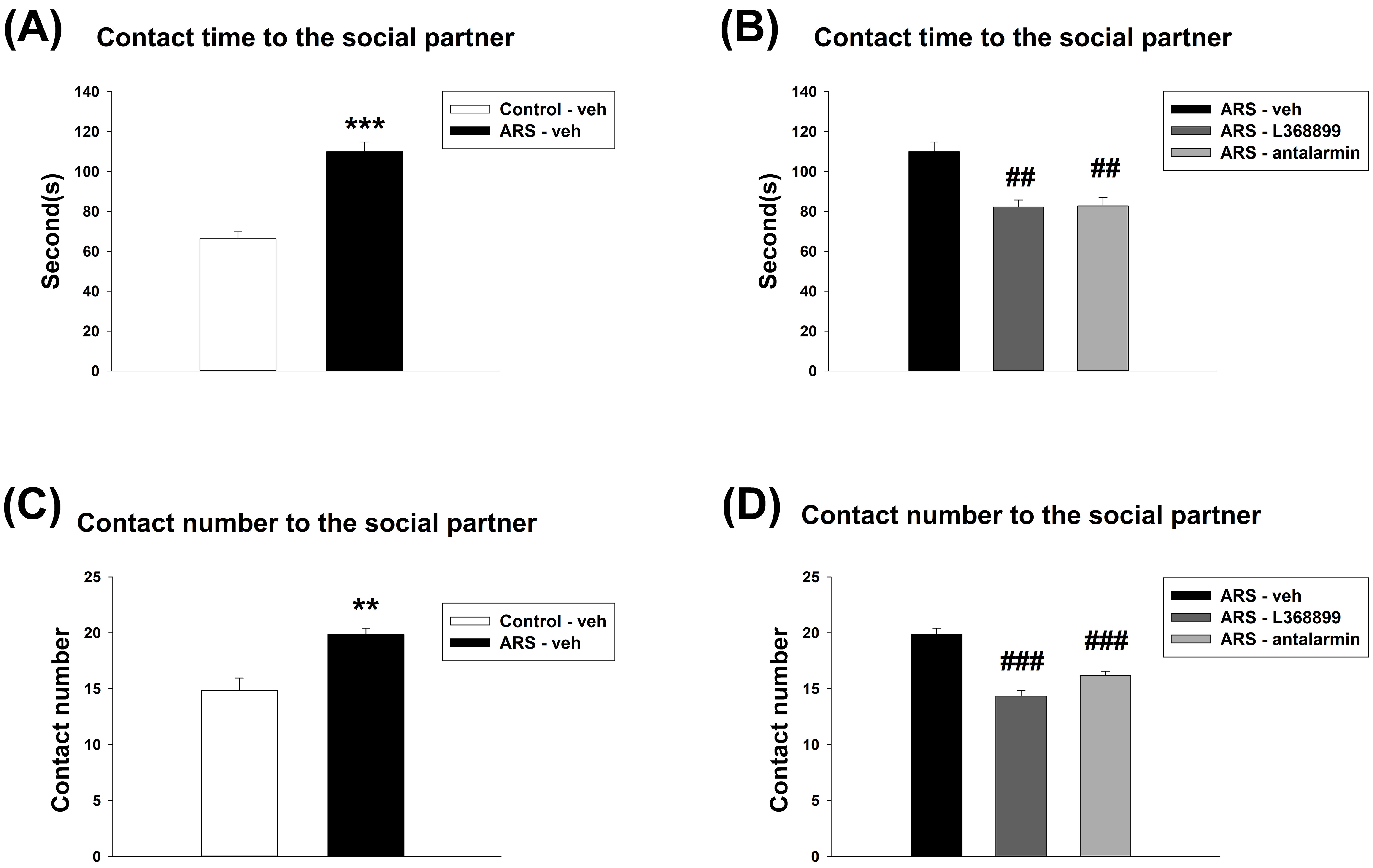 groups and (B) among ARS-veh, ARS-L368899, and ARS-antalarmin groups. The contact