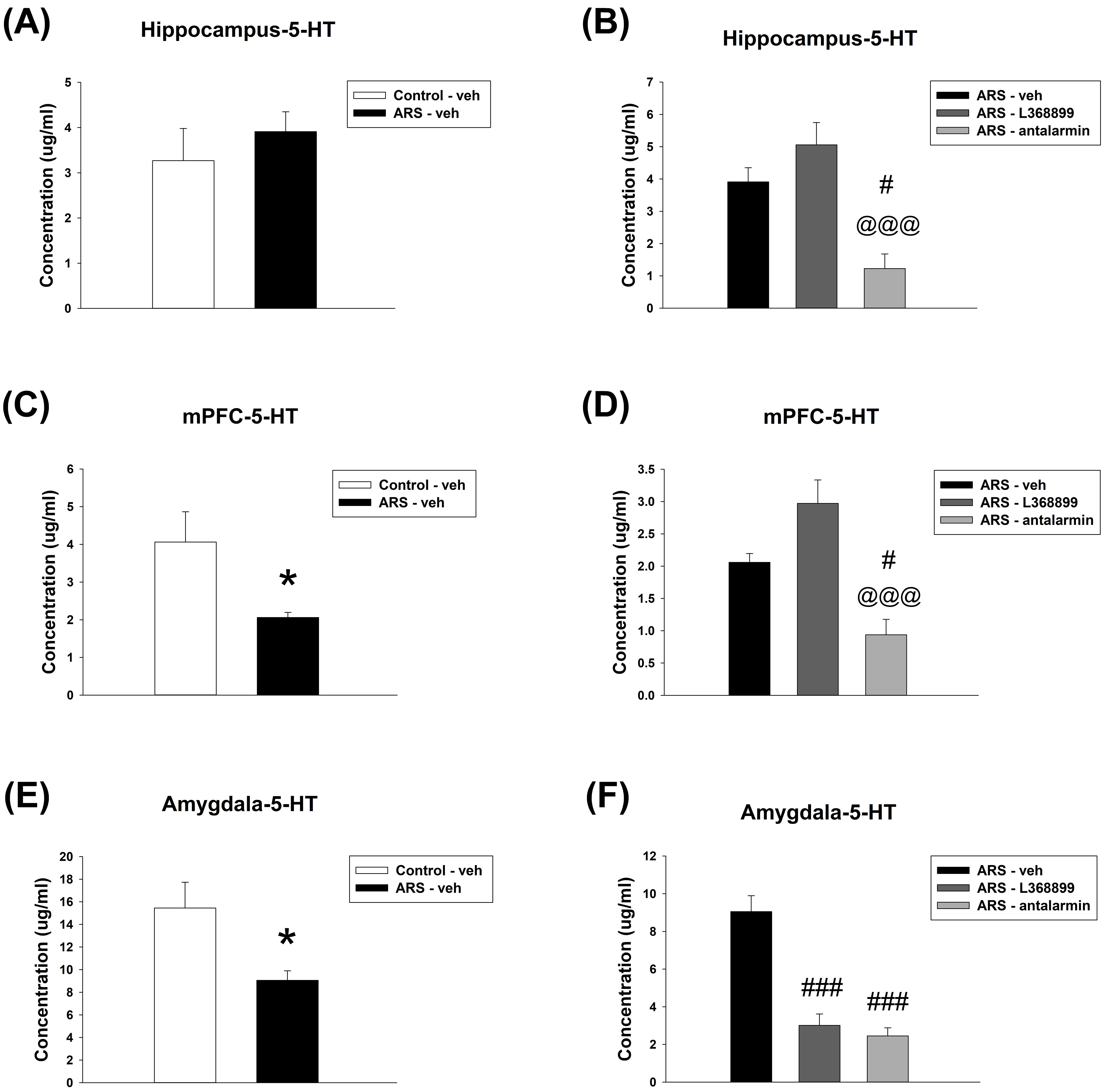 ARS-antalarmin groups. The amygdala 5-HT level (E) between the Control-veh and