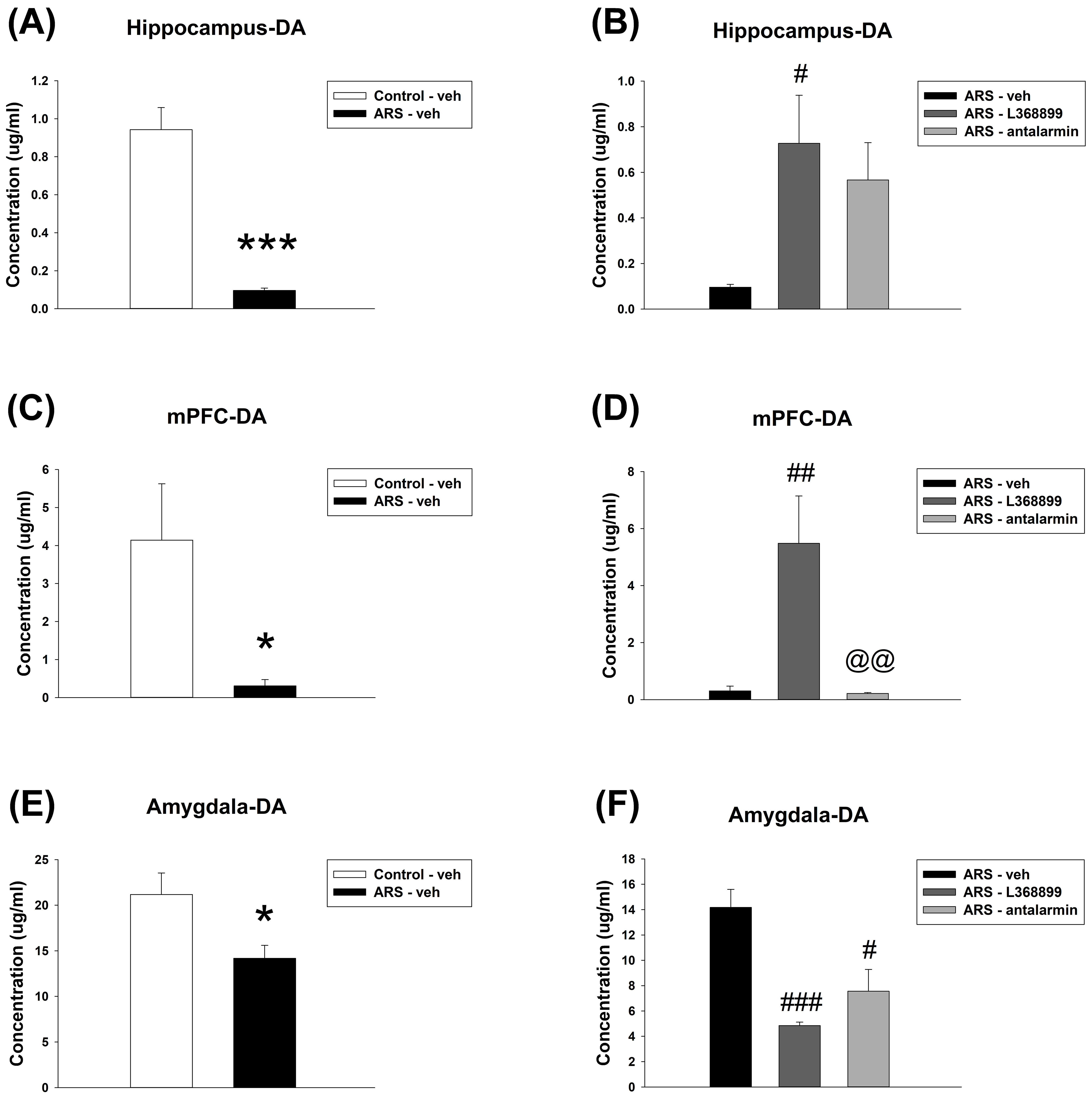 compared to the ARS-veh group. The hippocampal DA level (A) between the