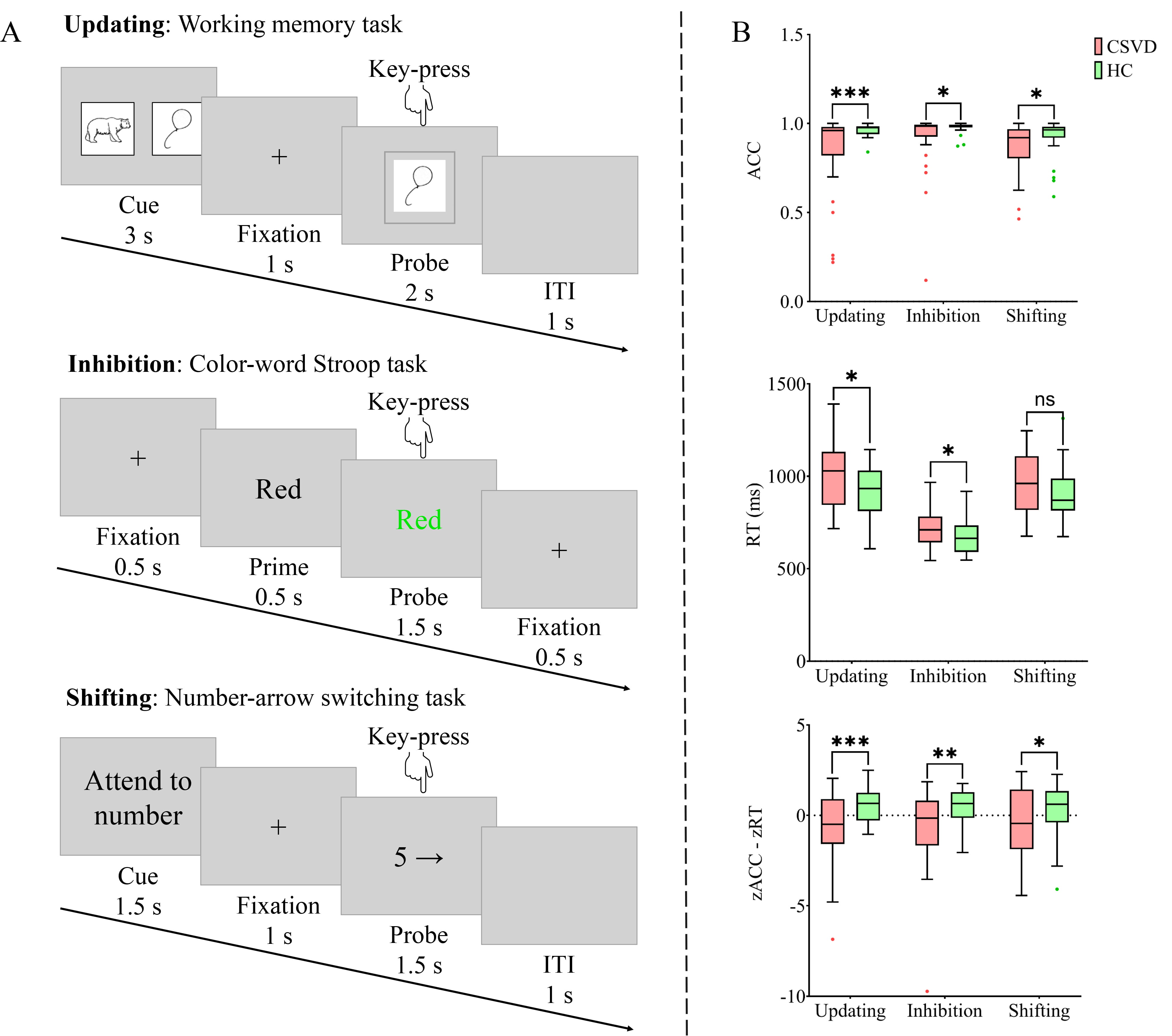 In the three cognitive tasks, the efficiency z-scores for the working memory