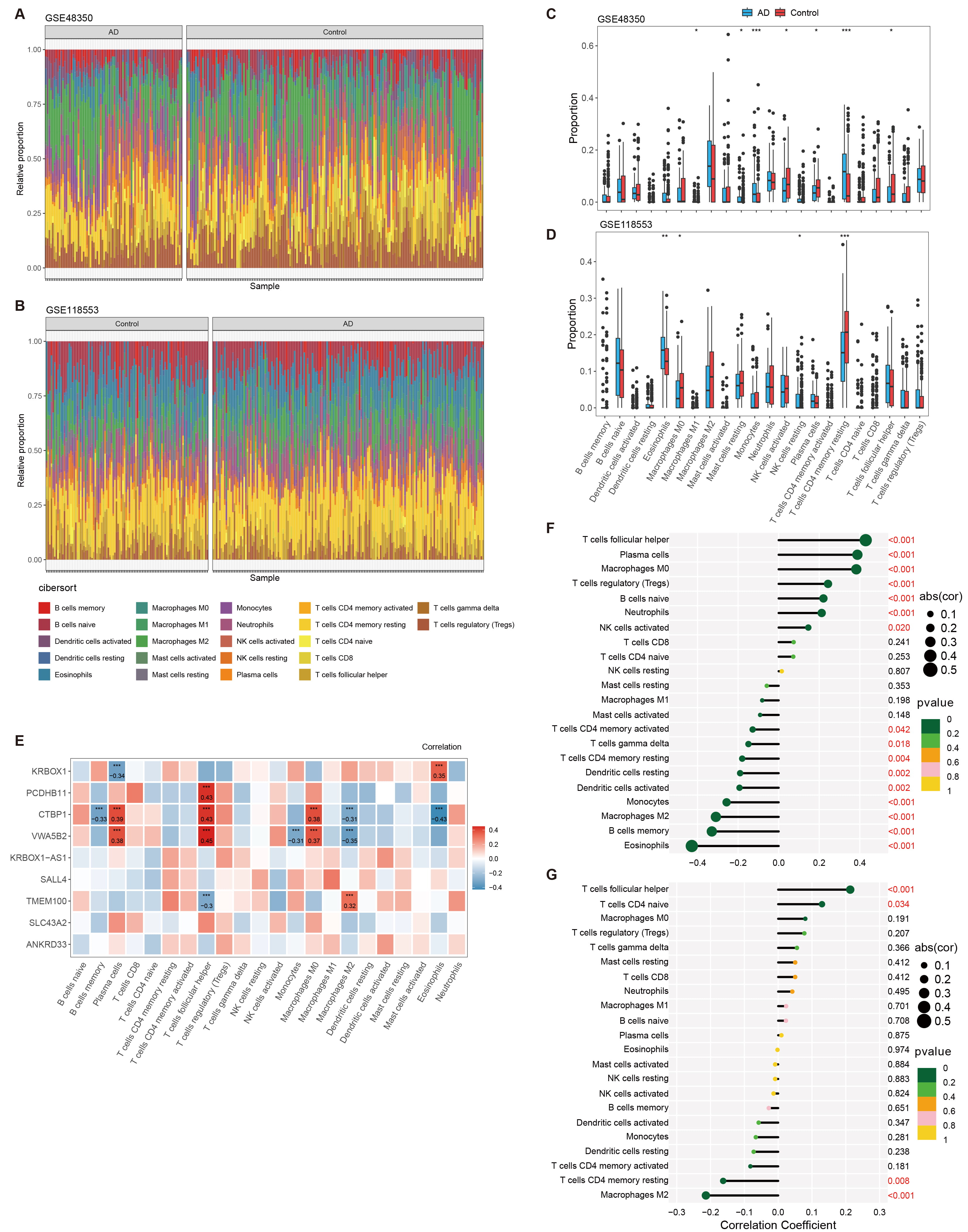infiltration in AD was further investigated using CIBERSORT. The immune cell