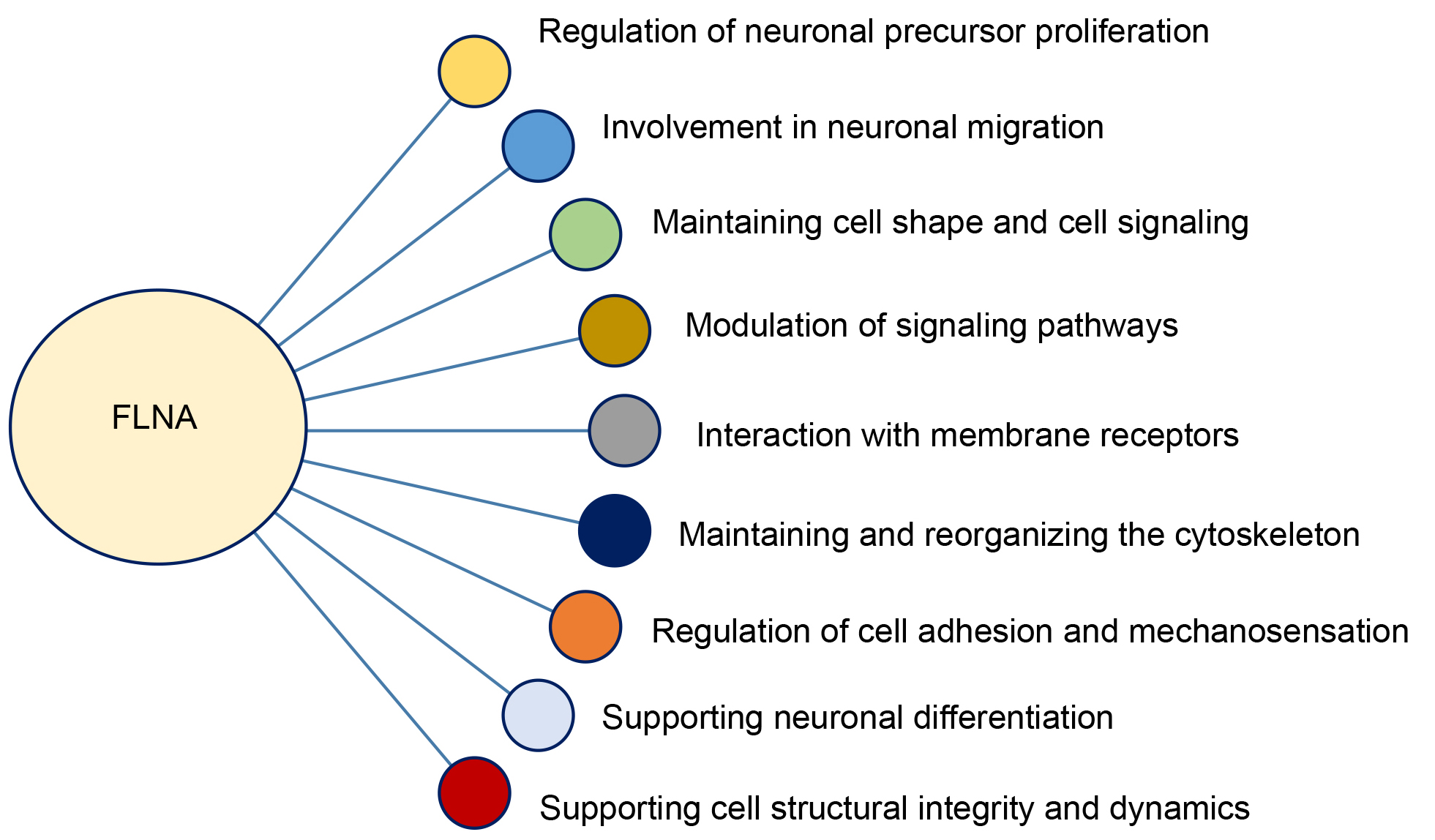 Fig. 3. Functional roles of filamin A (FLNA) in cellular dynamics and neurodevelopment.