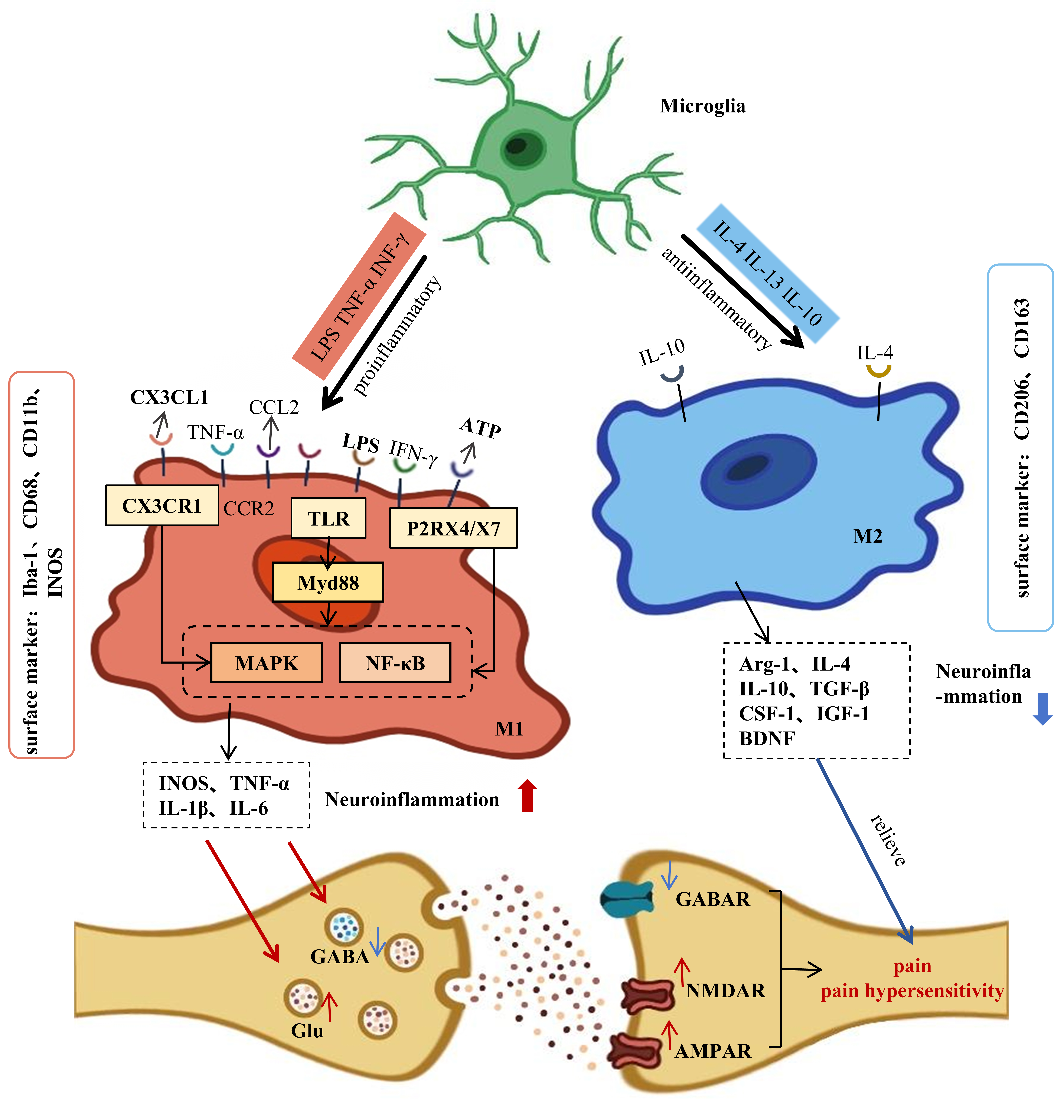 Chronic pain frequently coexists with adverse emotions, including anxiety and depression, significantly affecting patients’ physical and psychological health as well as their quality of life. Changes in hippocampal synaptic architecture, neuronal injury, and diminished neurogenesis significantly contribute to pain-related emotions. Microglia in the hippocampus are implicated in these pathologies. Stimulation or injury leads to microglial activation, which causes pain; prolonged pain causes microglia to continuously release pro-inflammatory factors that induce astrocyte activation, which mediates the apoptosis of hippocampal neurons and abnormal neurogenesis. Concurrently, microglia exhibit aberrant phagocytosis and augmented pruning of hippocampal dendritic spines, which disrupts synaptic plasticity and influences hippocampal long-term potentiation, hence contributing to the emergence of negative emotions. Inflammatory responses in the brain are a prevalent pathological foundation for mood disorders and pain, and the activation or inhibition of microglia M1 polarization can influence pain-related emotions. This review elucidates the significance of hippocampal microglia activation, and their interactions with neurons in the hippocampus and astrocytes, in pain-related emotions.