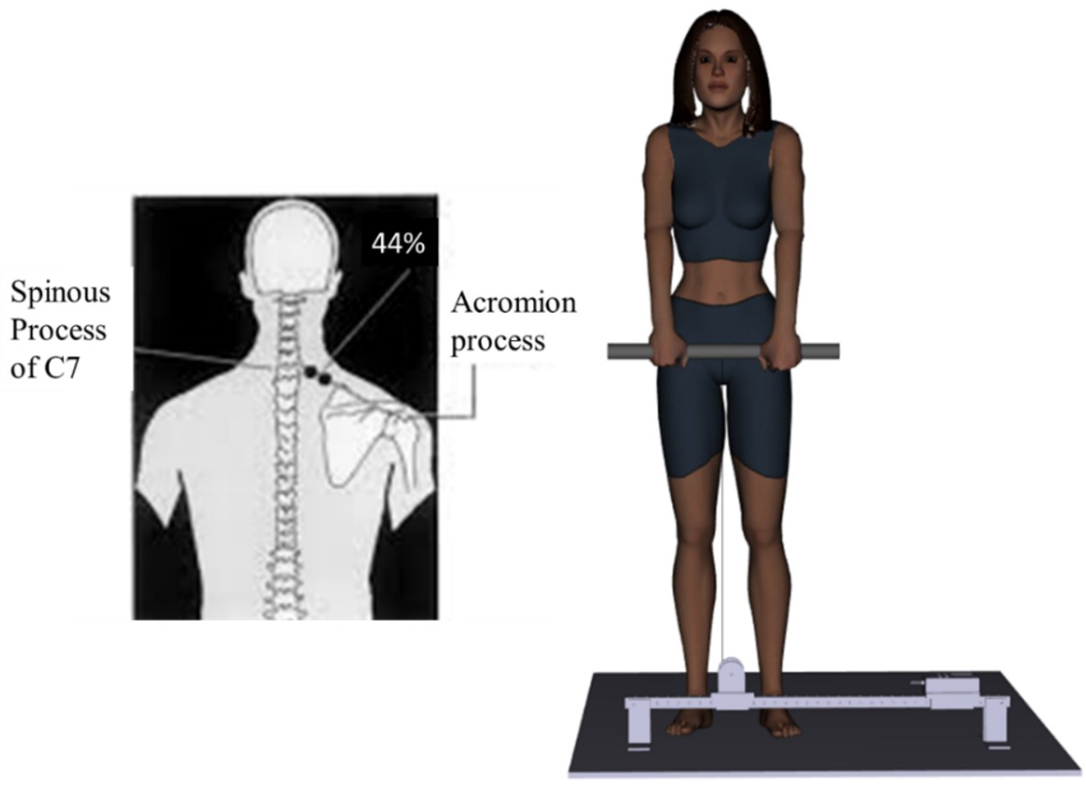 Fig. 3. Experimental set-up for upper trapezius muscle MVC. (Created using Santos Pro software).