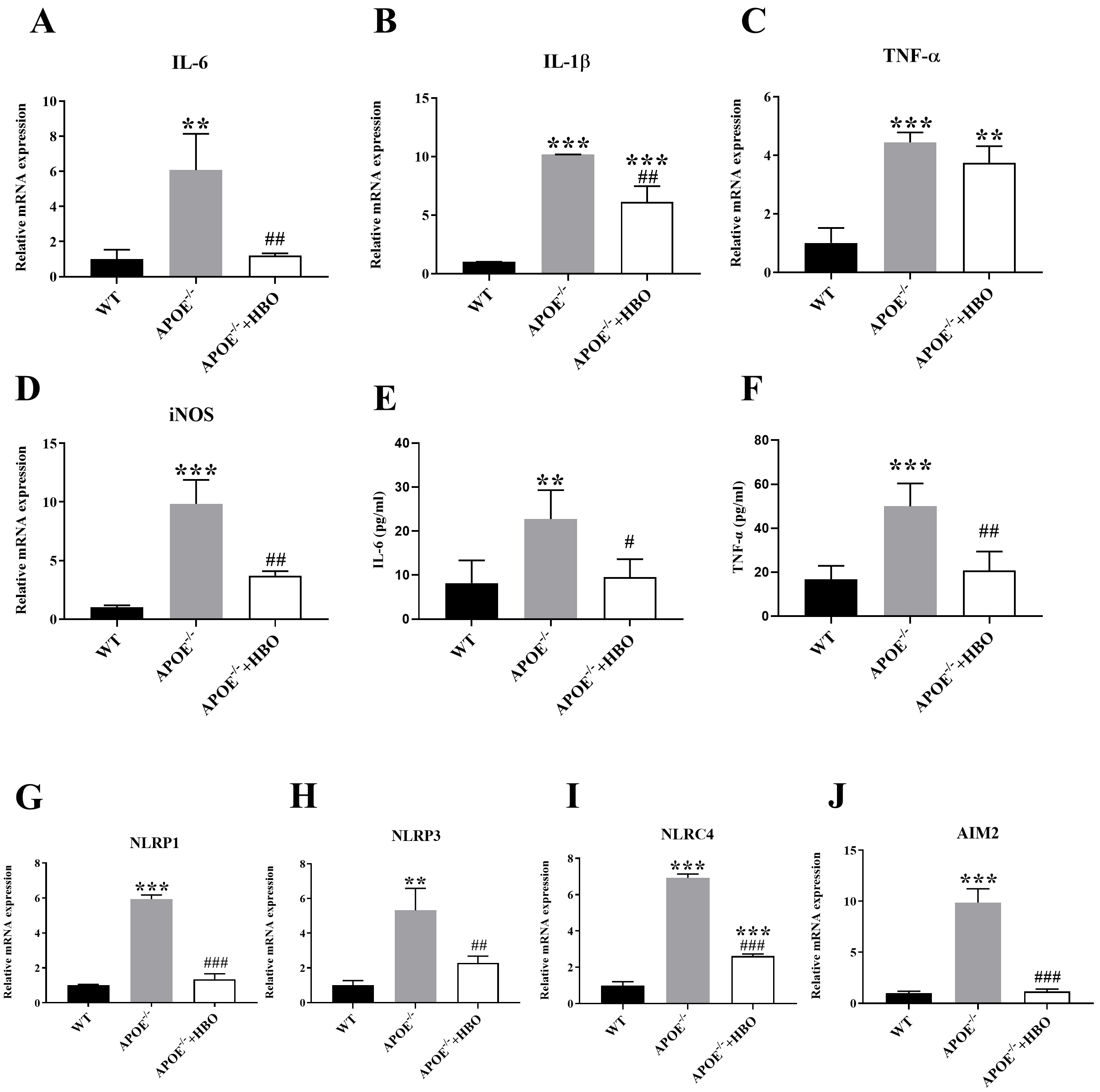 Mice were stratified into three cohorts (n = 7 per group): WT group: Age-matched C57BL/6J mice serving as baseline controls, an ApoE-/-group: Untreated ApoE-/- mice maintained on a standard diet and an ApoE-/- +HBO group: ApoE-/- mice subjected to HBO therapy for 10 consecutive days.