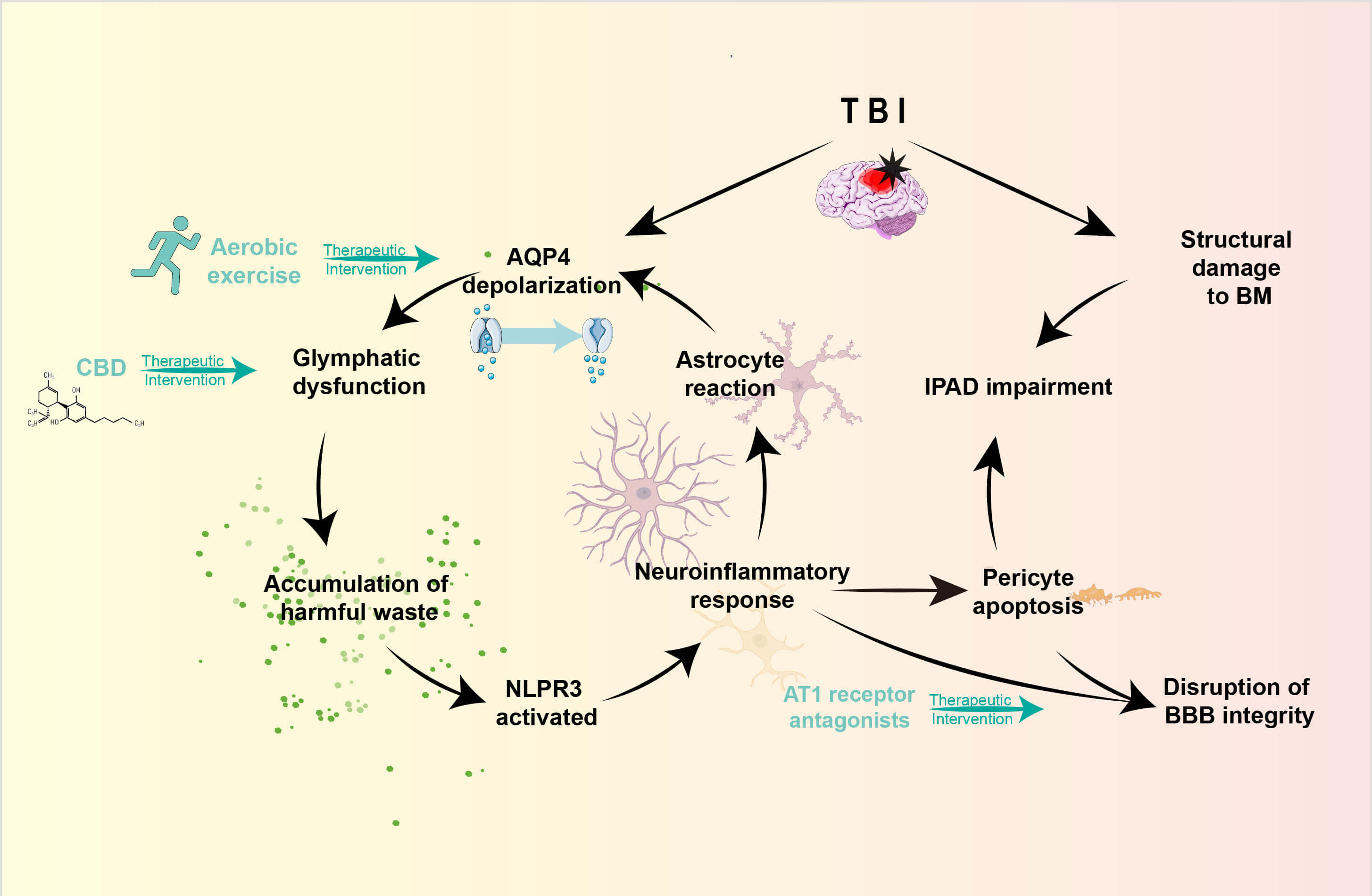 These pathophysiological insights demonstrate that optimal post-TBI metabolic clearance requires coordinated therapeutic strategies targeting both BBB integrity restoration and glymphatic pathway reconstruction, emphasizing the need for dual-system intervention approaches in clinical management.