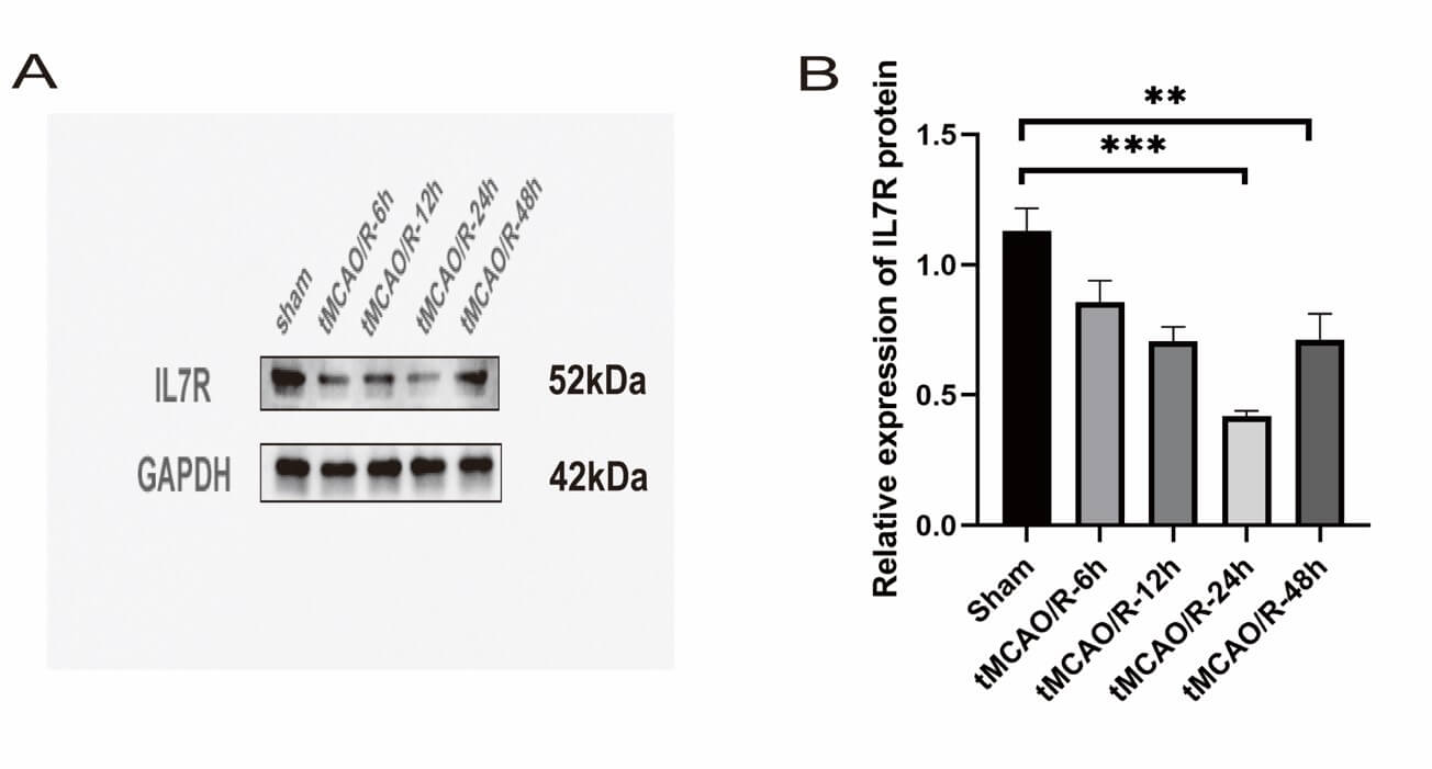 reduction in IL7R expression was detected at 24 h post-tMCAO (p