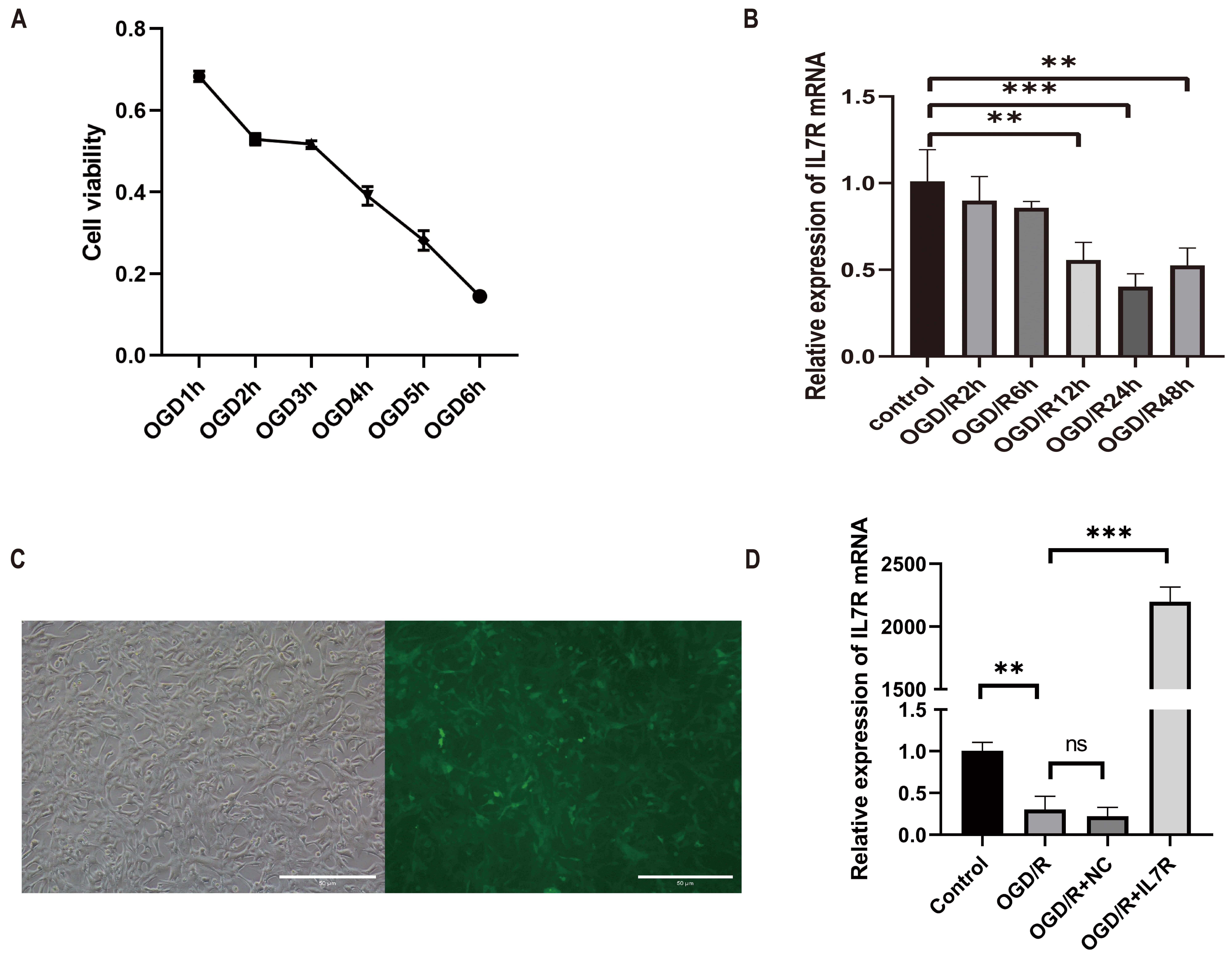OGD was set to 3 h (Fig. 6A). In the OGD/R model, IL7R mRNA levels were