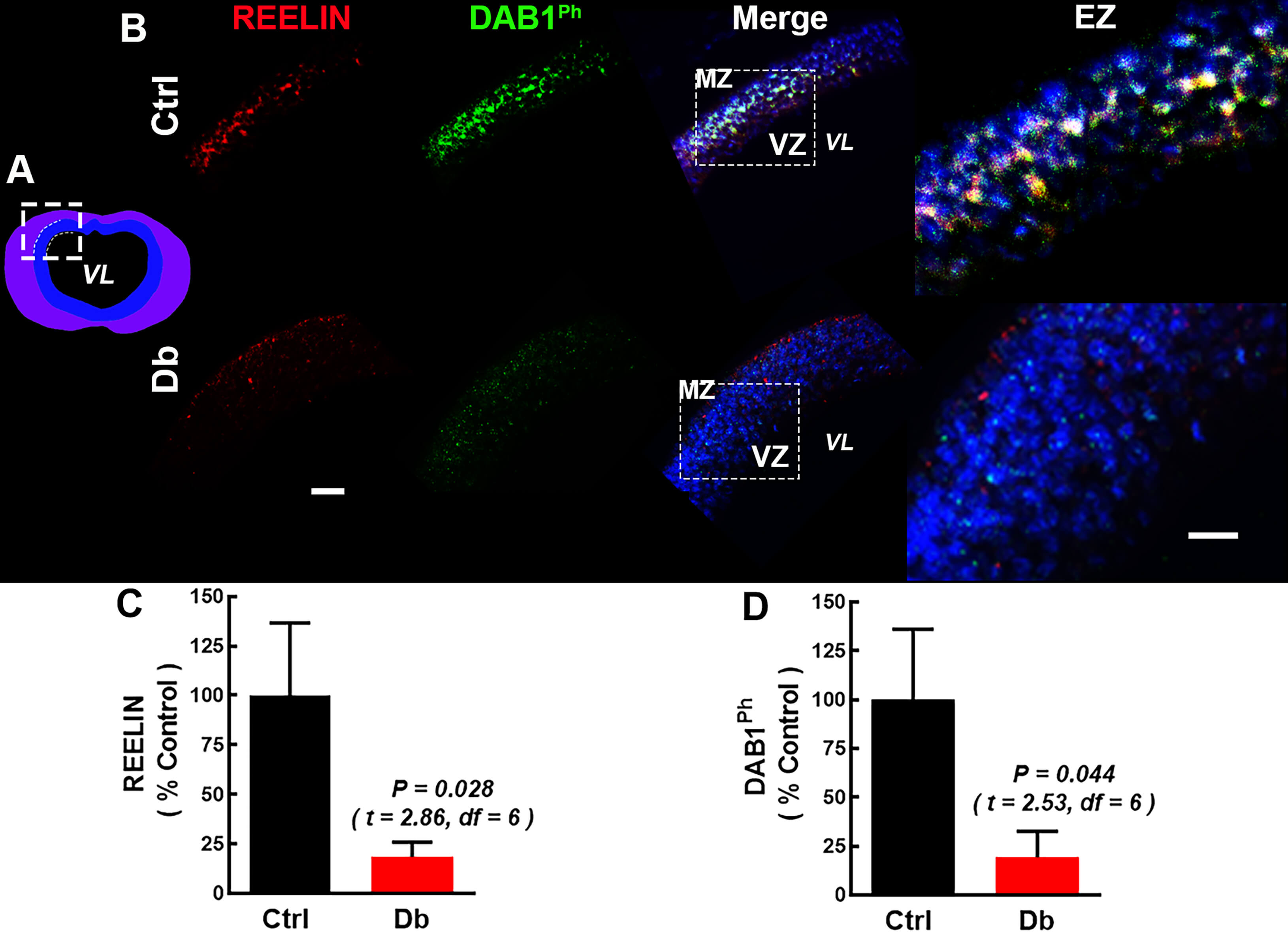 without reaching the VZ. In the Db group, RELN labeling was scarce along the