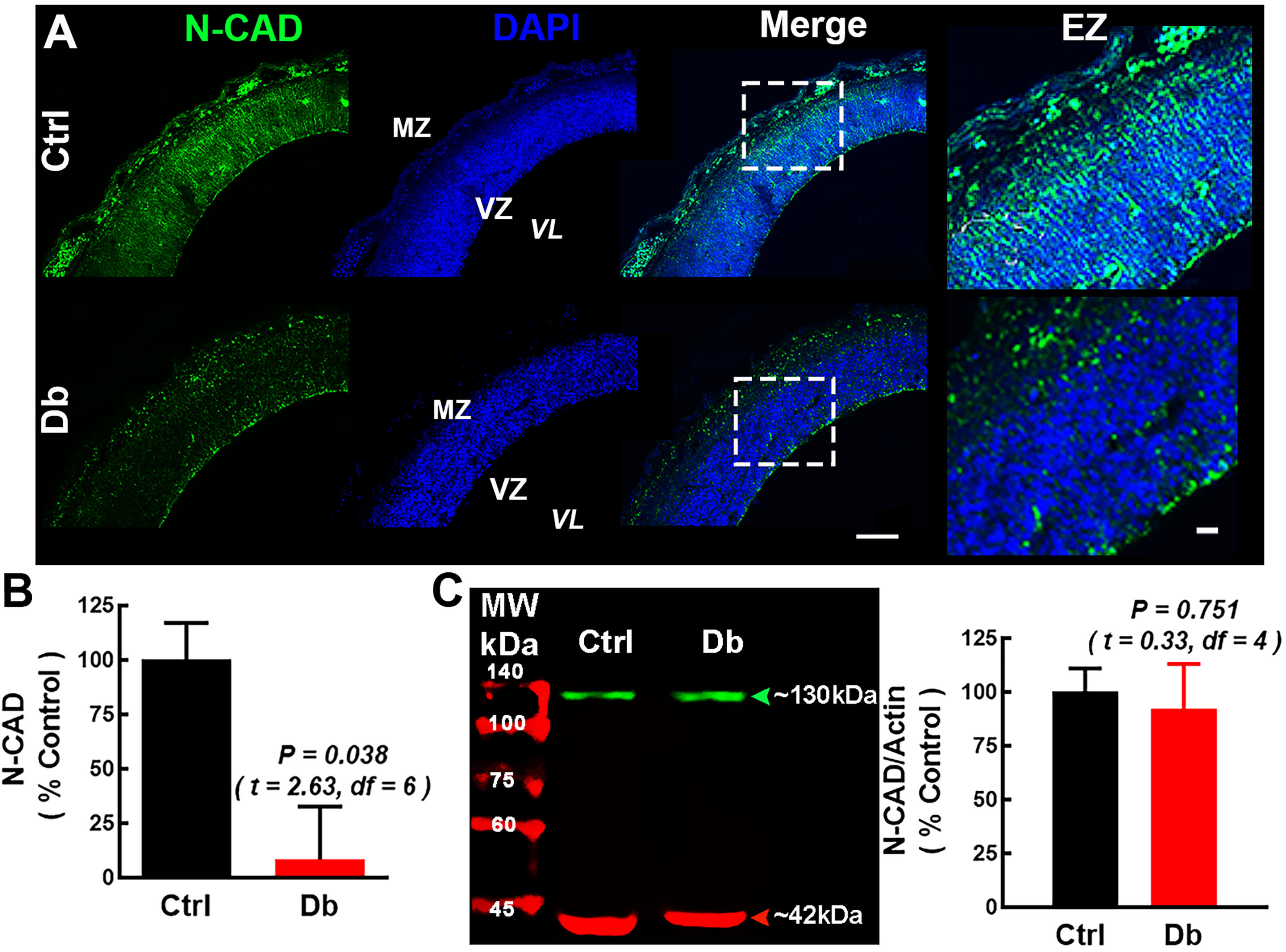 migrating neuroblasts (Fig. 4A). In the Db group, N-CAD radial pattern was