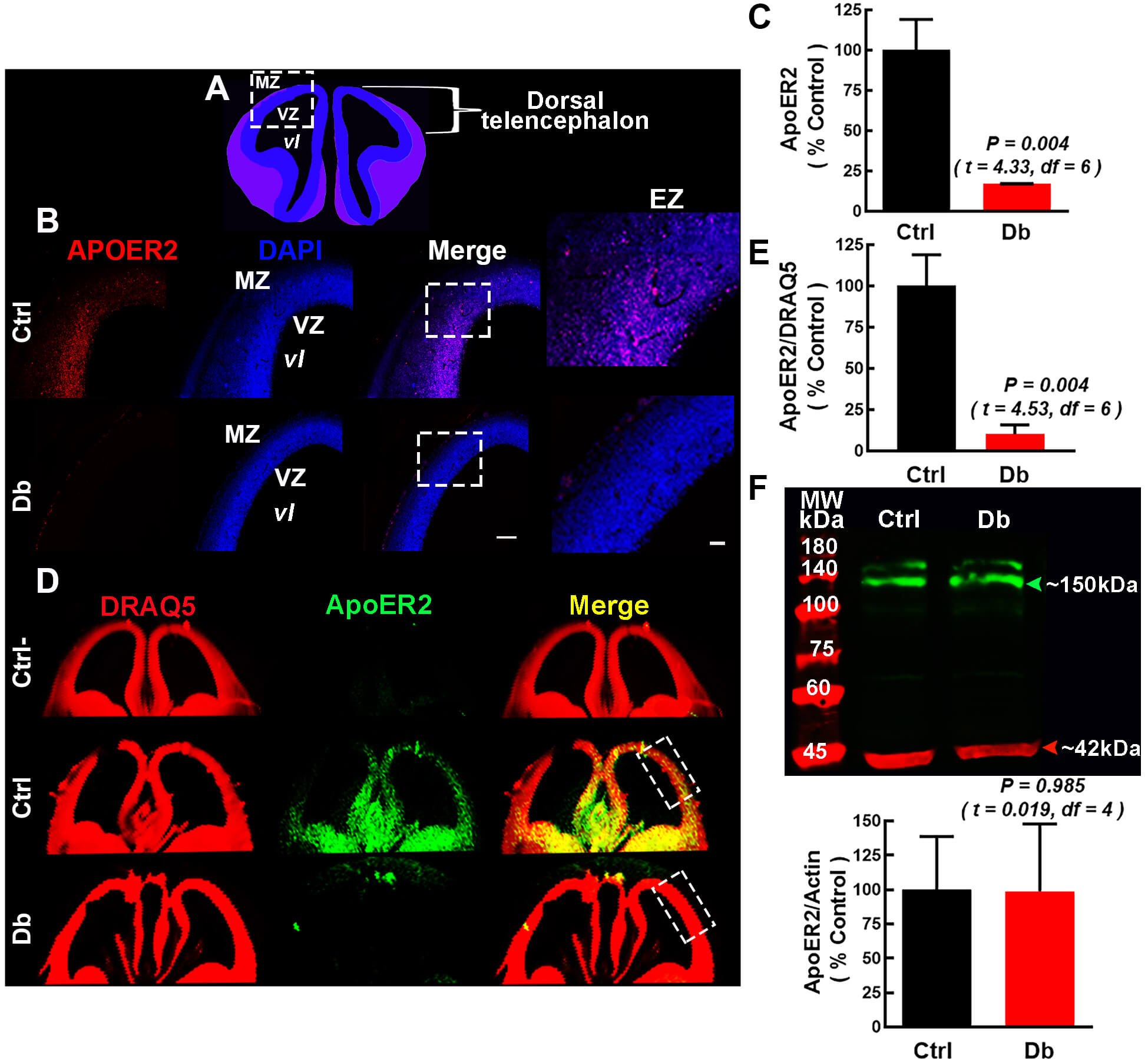 (Fig. 5A–F and Fig. 6A–F). ApoER2 was decreased in the Db group relative to the