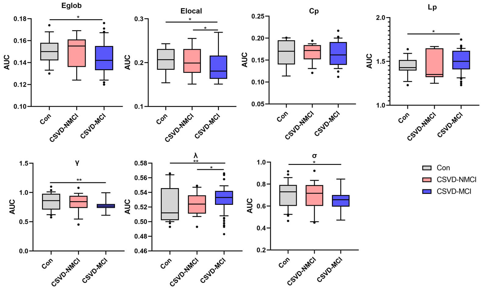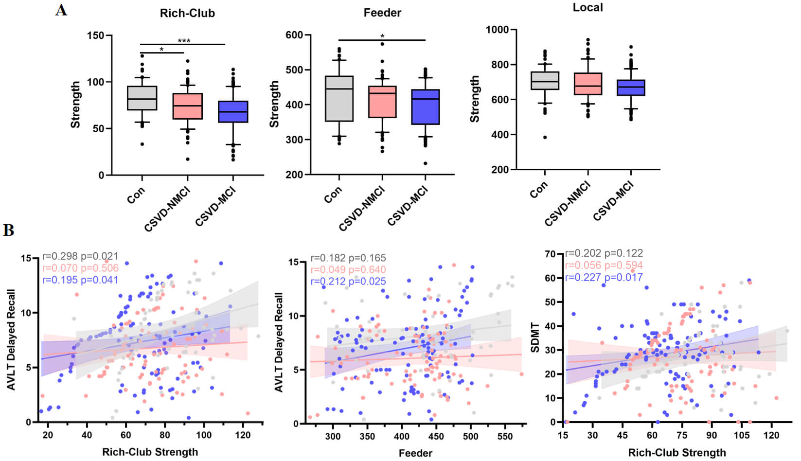 related to AVLT in CSVD-MCI. In the SDMT, only rich-club strength in CSVD-MCI