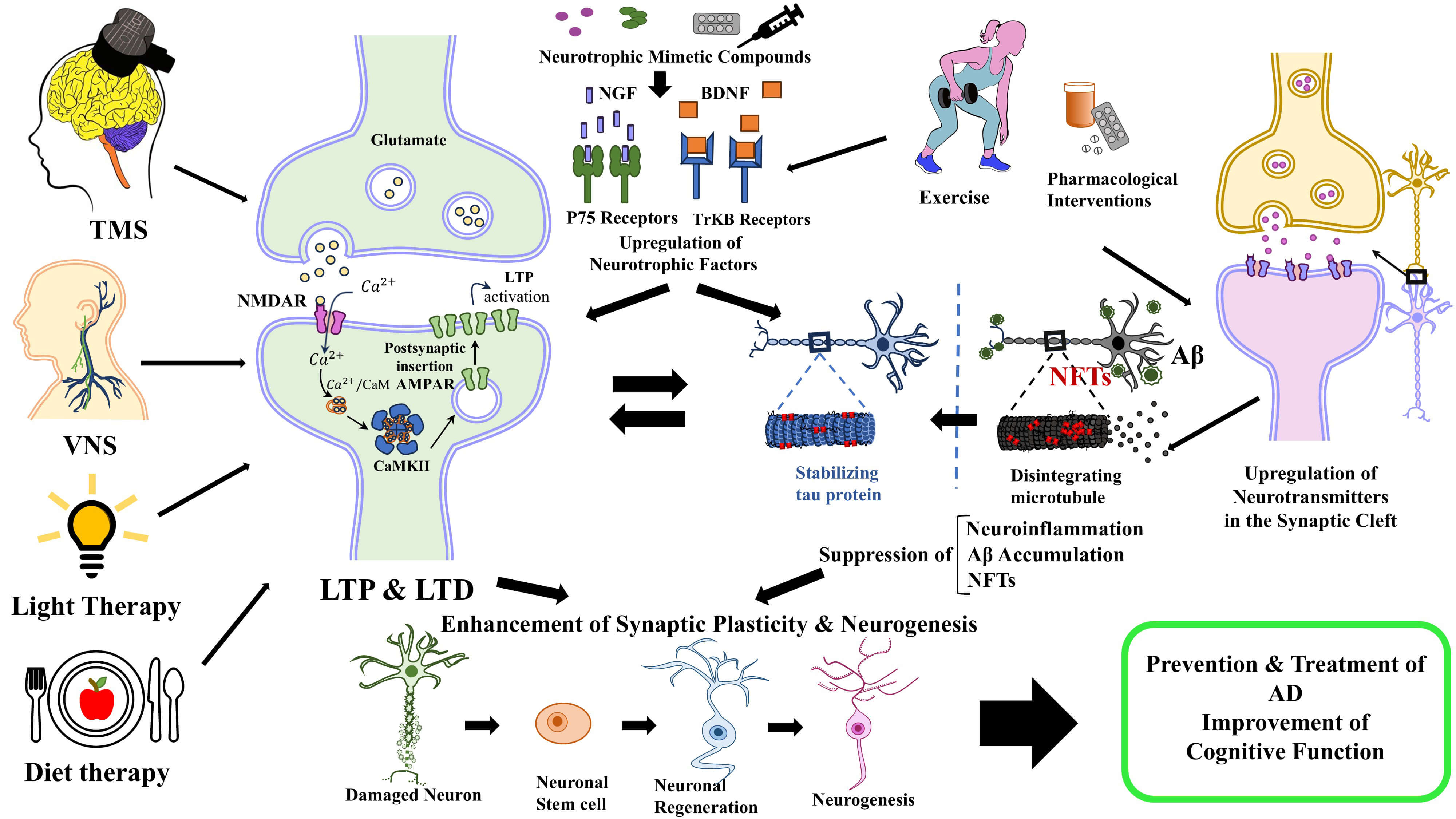 Fig. 1 summarizes the potential therapeutic approaches contributing to the enhancement of synaptic plasticity and neurogenesis in AD.