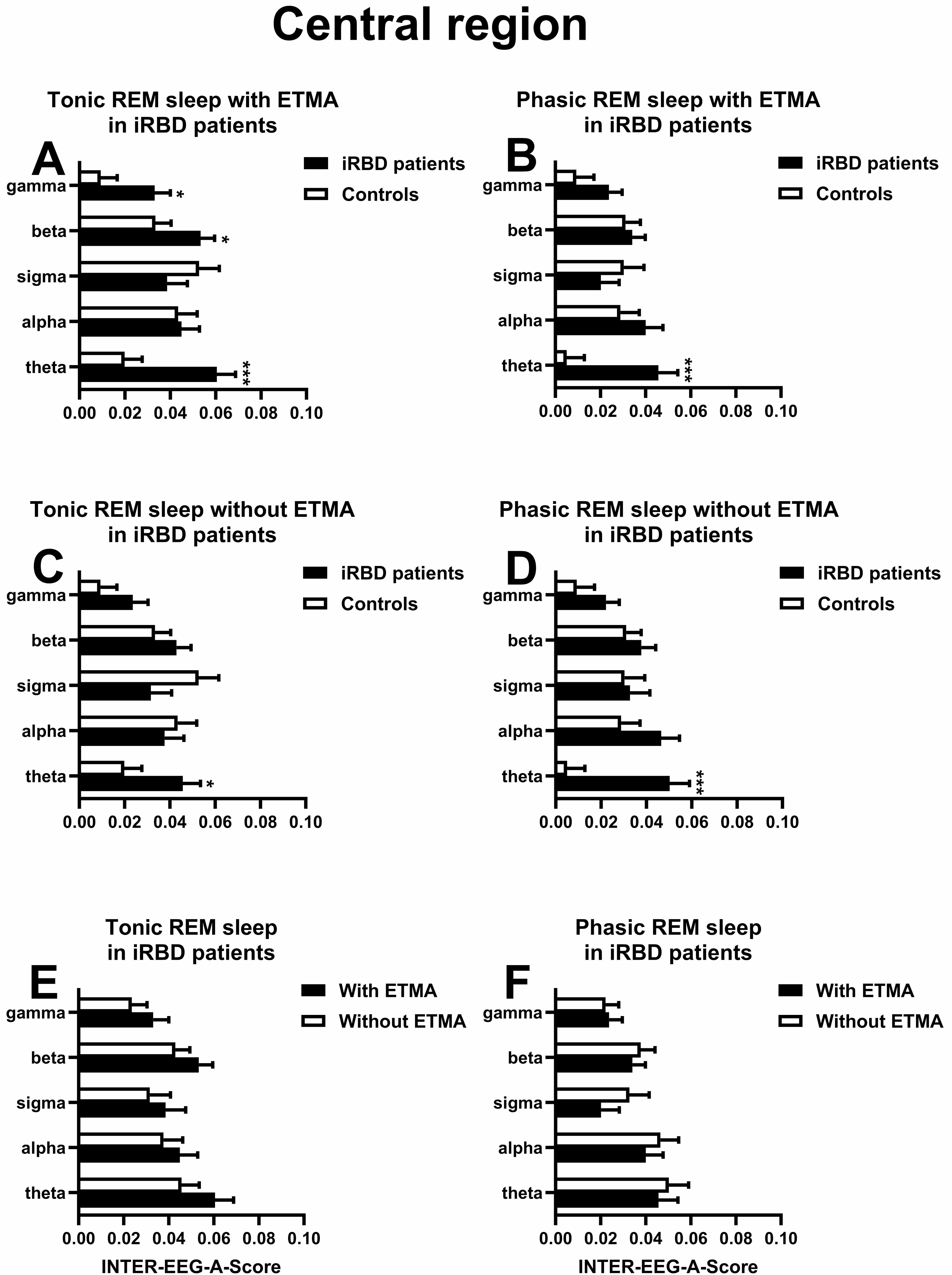 During tonic REM sleep with ETMA in the central cortical region, the iRBD
