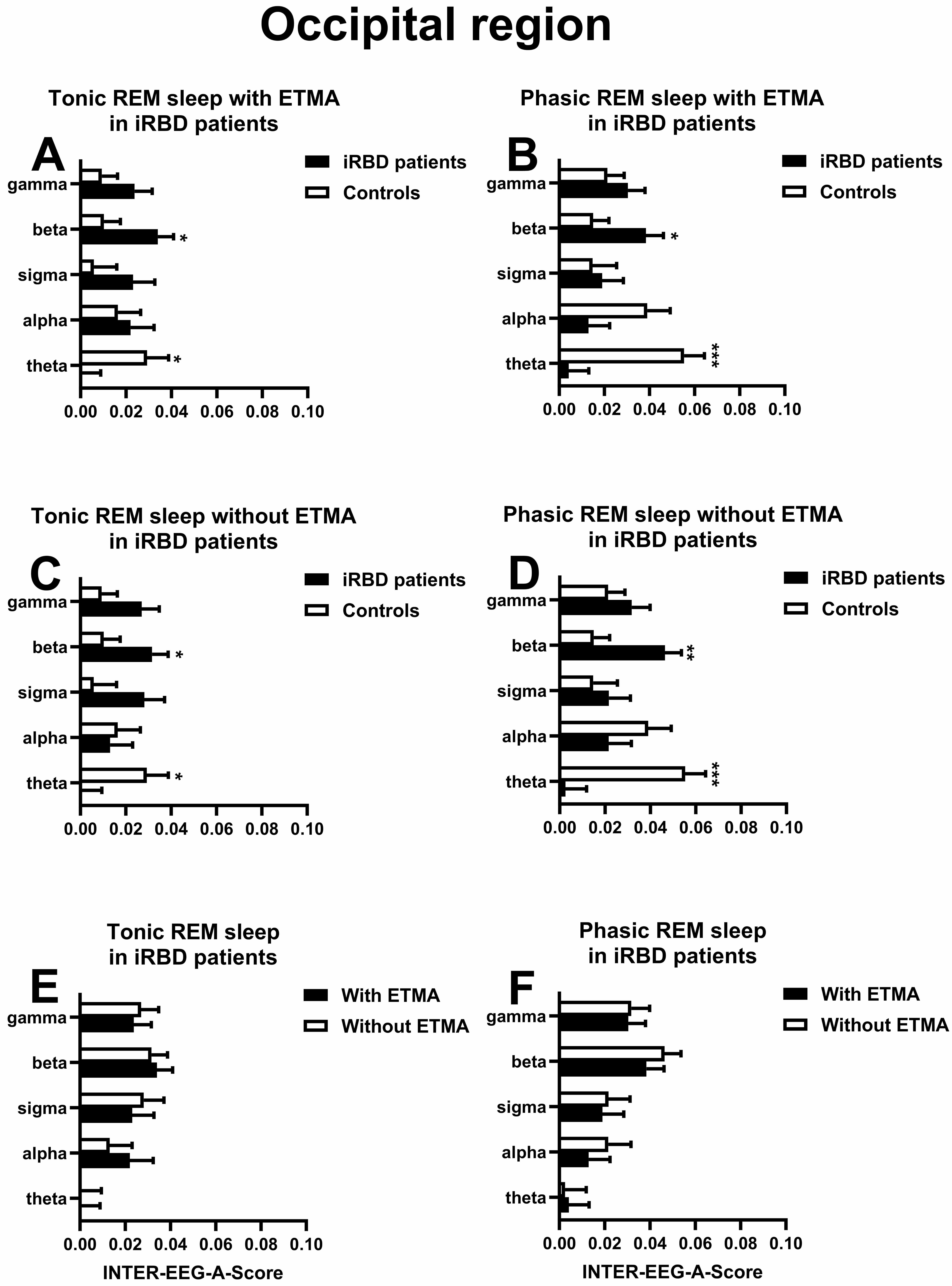 During phasic REM sleep with ETMA in the occipital cortical region, the iRBD