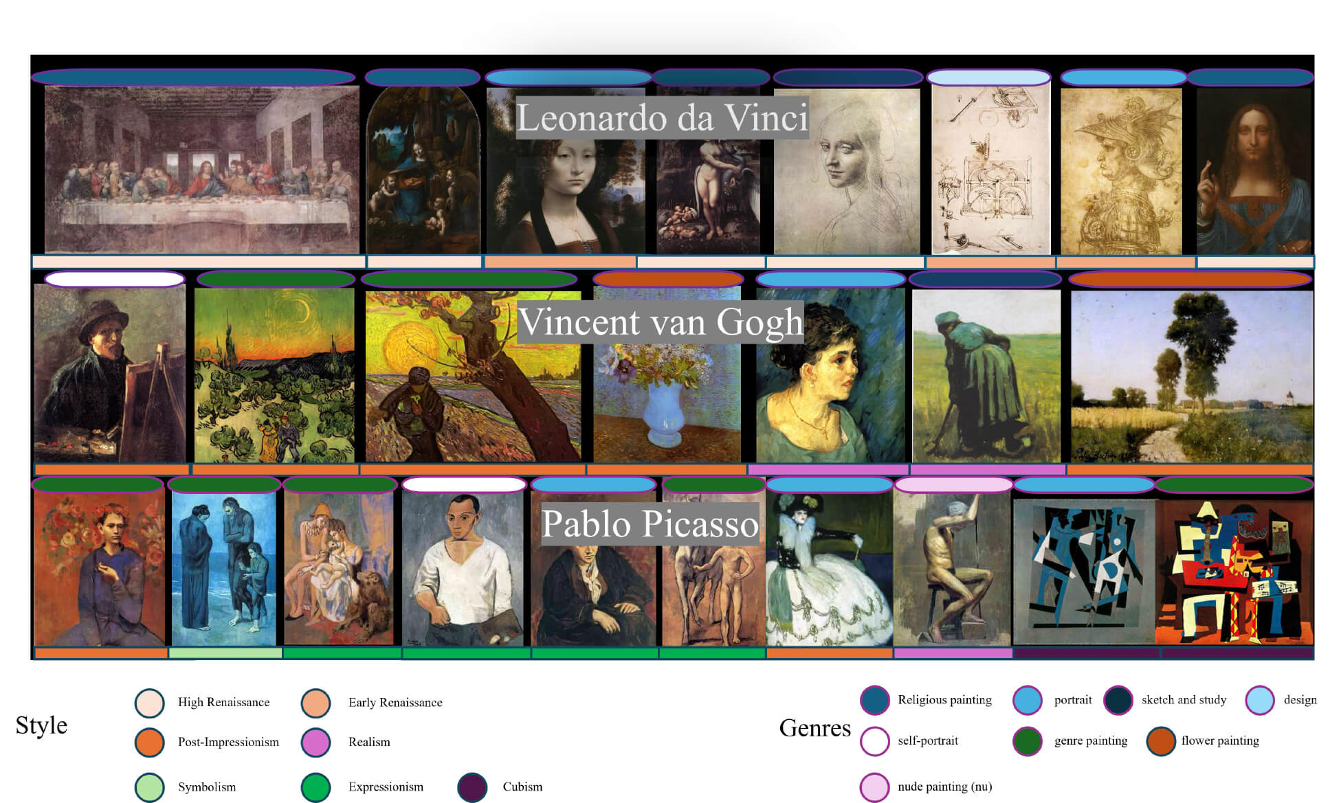 Some example art paintings (artist, style, and genre are intrinsically linked).