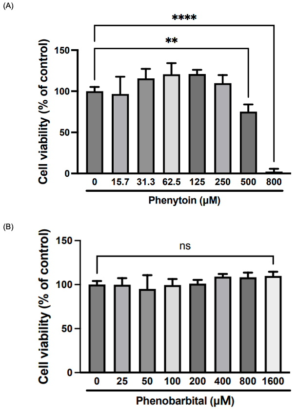 containing different concentrations of (A) phenytoin or (B) phenobarbital for 48