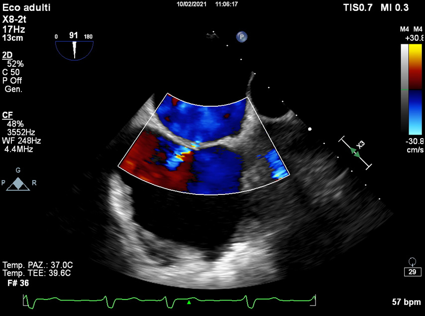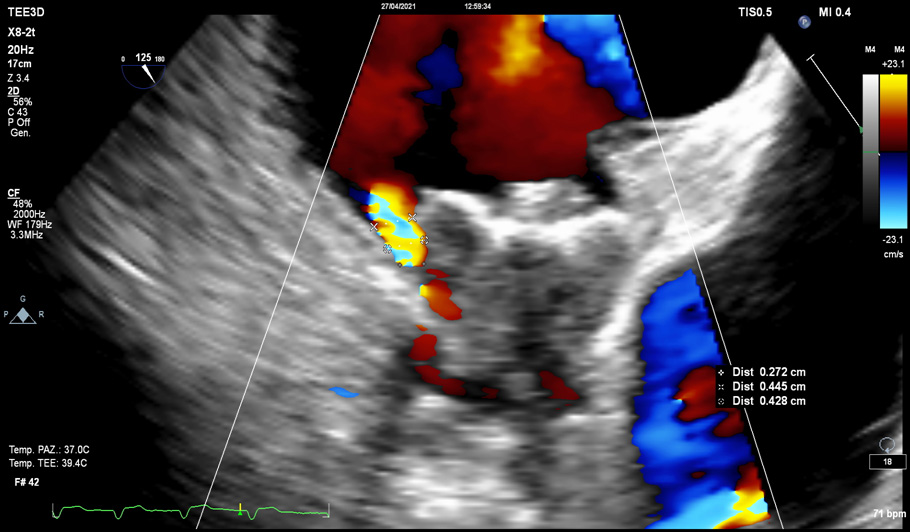 Fig. 10.Post-operative TOE. Residual atrial septum defect (ASD): the majority of procedure-related ASD disappear.
